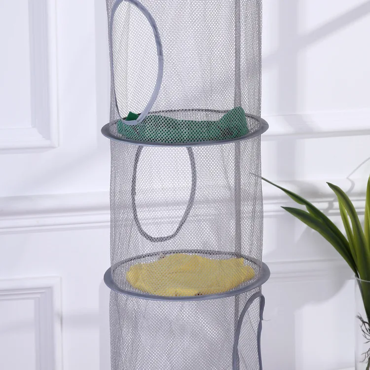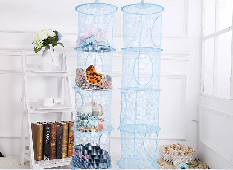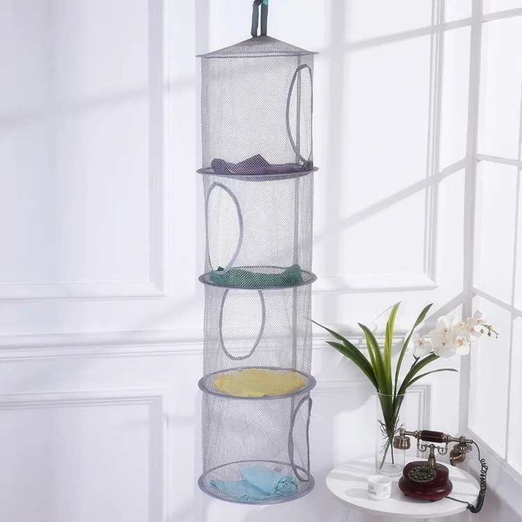 Складная сетка для хранения белья, подвесная корзина, сетчатая сетка-сушилка для одежды, сушка в четыре решетки, ветрозащитная Складная цилиндрическая корзина