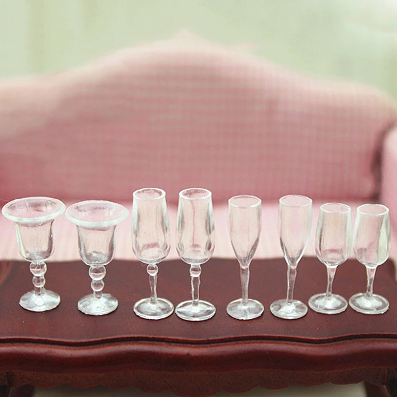 4 шт Мини Ясно Смола моделирование стеклянный стакан вина модель мебели для 112 кукольный домик игрушка в подарок для детей, 4 вида стилей