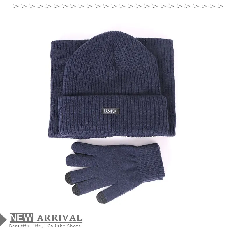 Зимняя шапочка-шарф, перчатки, комплект из трех предметов, женские и мужские перчатки с сенсорным экраном, уличные теплые бархатные вязаные шапки унисекс, головные уборы наборы
