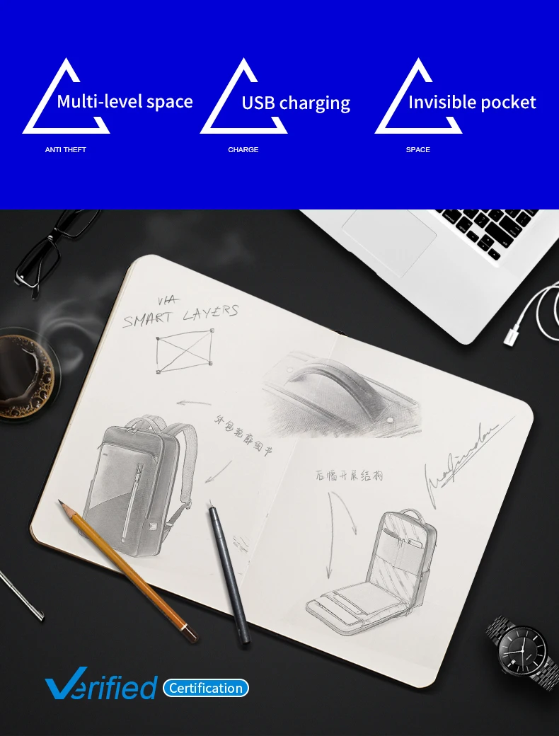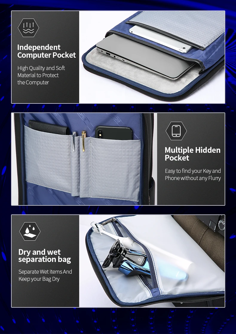 Рюкзак BOPAI мужской, для ноутбука 15,6 '', водонепроницаемый, с usb и защитой от кражи