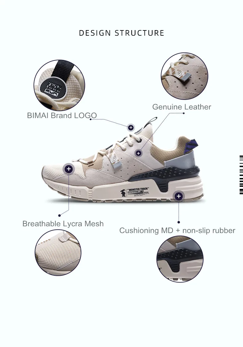 Дышащие кожаные легкие кроссовки BMAI для бега, амортизирующие мужс...