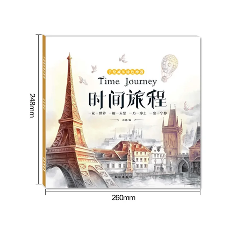 Книга-раскраска Time Journey для детей и взрослых, книга для рисования, снятия стресса, раскрашивания времени граффити, 48 страниц