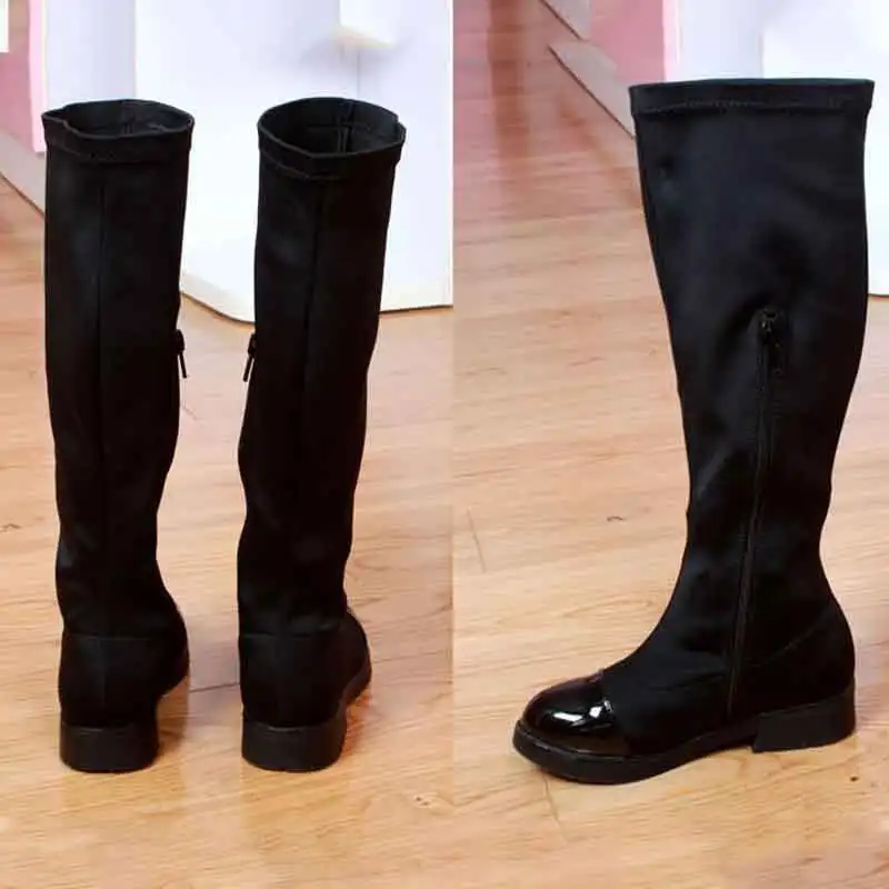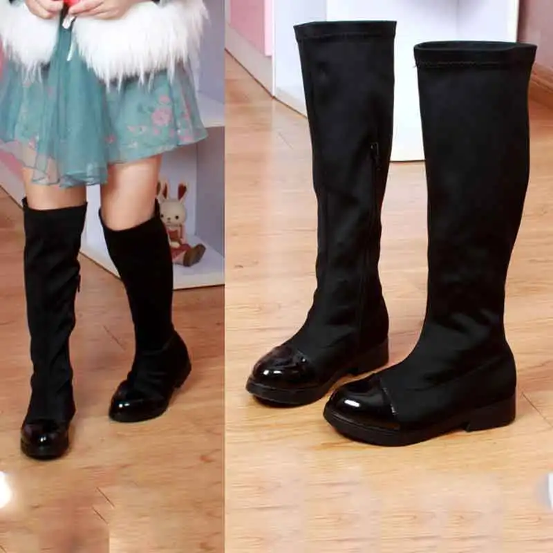 Длинные сапоги принцессы для девочек, кожа и эластичная ткань, удобные сапоги выше колена, модная классическая обувь, обувь на плоской подошве для детей и студентов