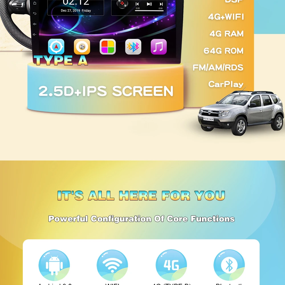 Автомобильная Мультимедийная система на Android 10, 4G, Wi-Fi, DSP,...