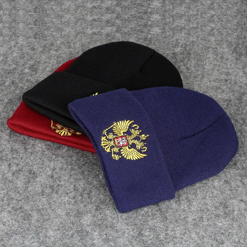 Зимние облегающие шапки в стиле хип-хоп, теплые вязаные шапки, российские двухсторонние шапки с эмблемой страны орла, памятные шапочки с знаком, мужские шапки