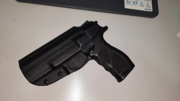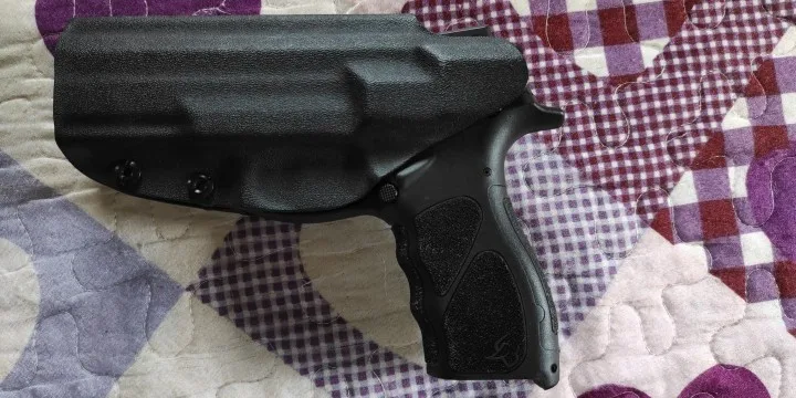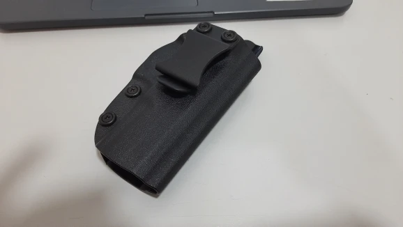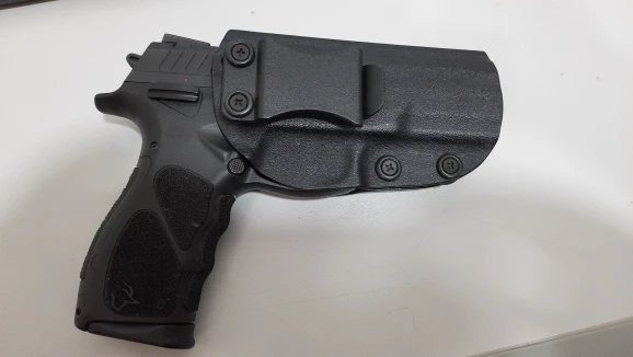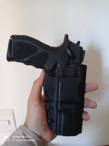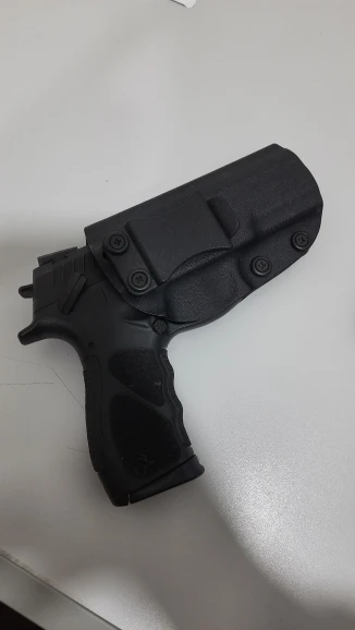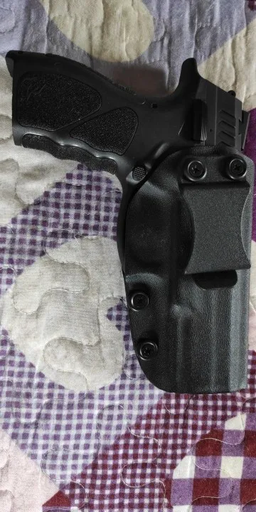 Кобура хорошая, внешне устойчивая и идеально подходит для th9. Слабый момент-это зажим, сделанный из полимера, он имеет достаточно давления на пояс/талию, и снижает скорость, так как кобура может повесить талию вместе с пистолетом.