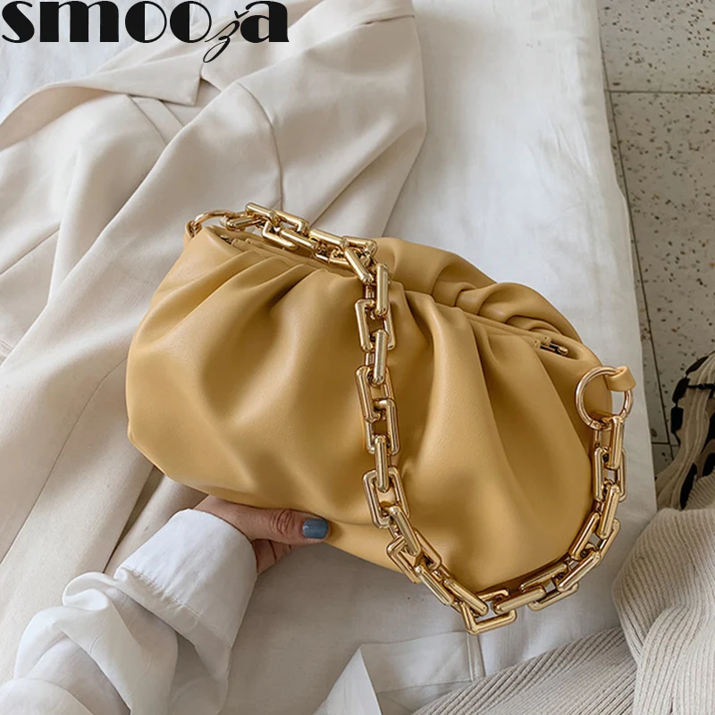 SMOOZA, Золотая цепочка, сумка из искусственной кожи для женщин, 2021, летняя сумка для подмышек, женские сумки на плечо, Женская однотонная дорожная сумочка