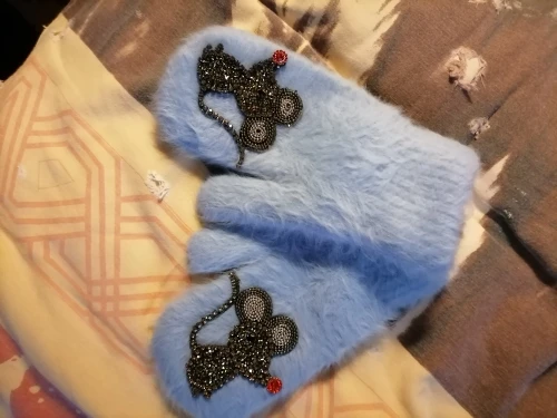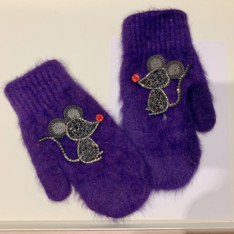Женские зимние перчатки, роскошные перчатки Стразы с мультяшной мышью, с закрытыми пальцами, мягкие меховые перчатки для девочек, варежки, подарок