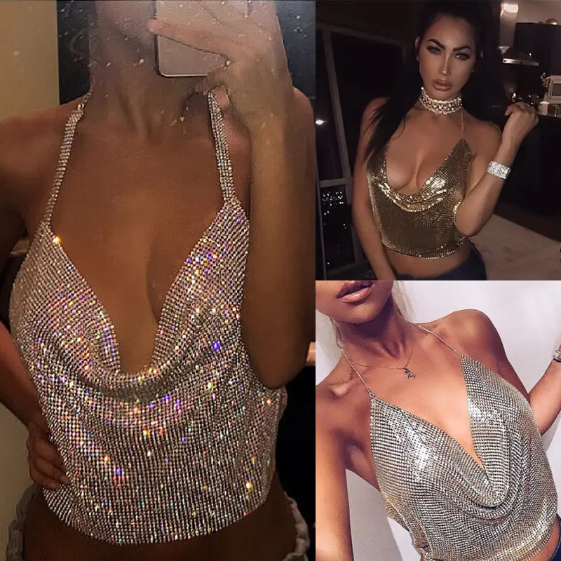 Элегантный металлический укороченный топ, летний сексуальный клубны...