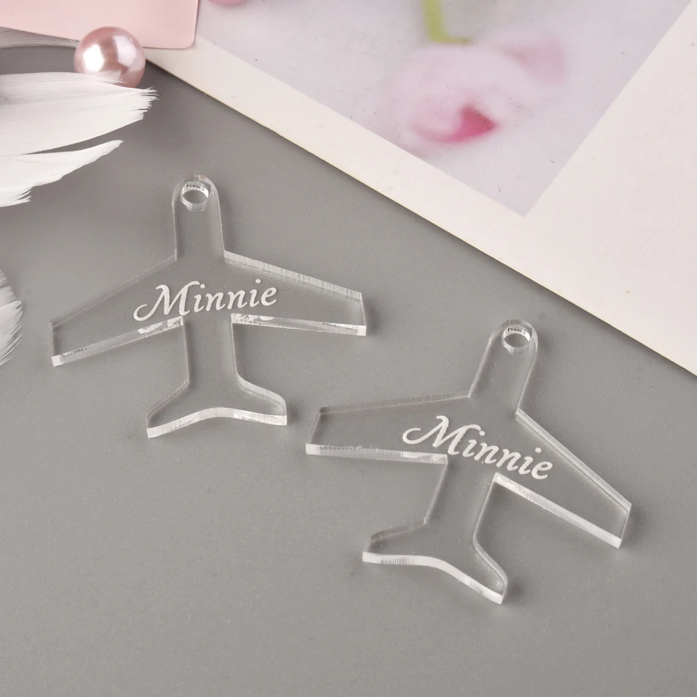 50 шт. Персонализированные Бирки с названием самолета, акриловые Пригласительные открытки, шоколадная бирка с логотипом для вечерние НКИ, украшение для гостей на свадьбу