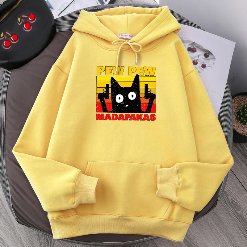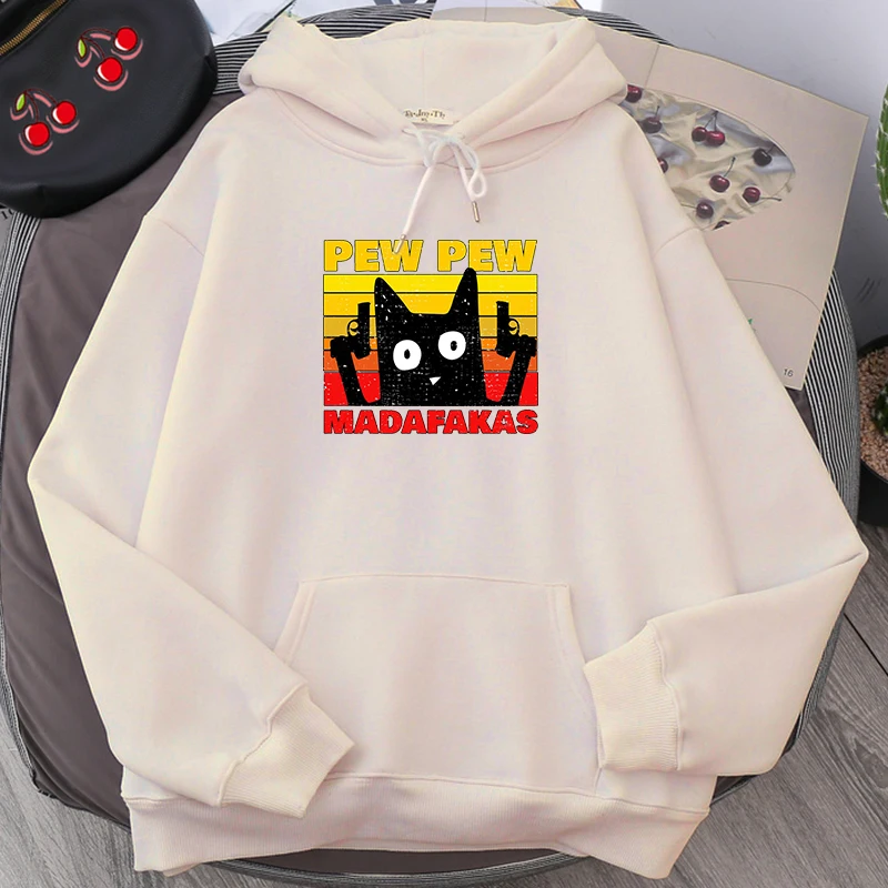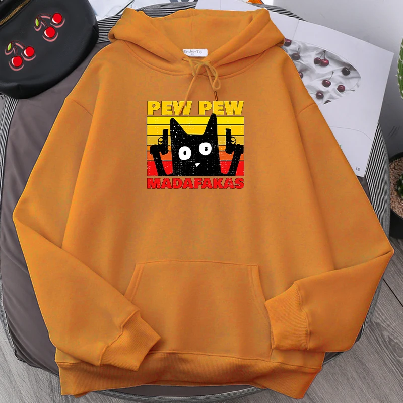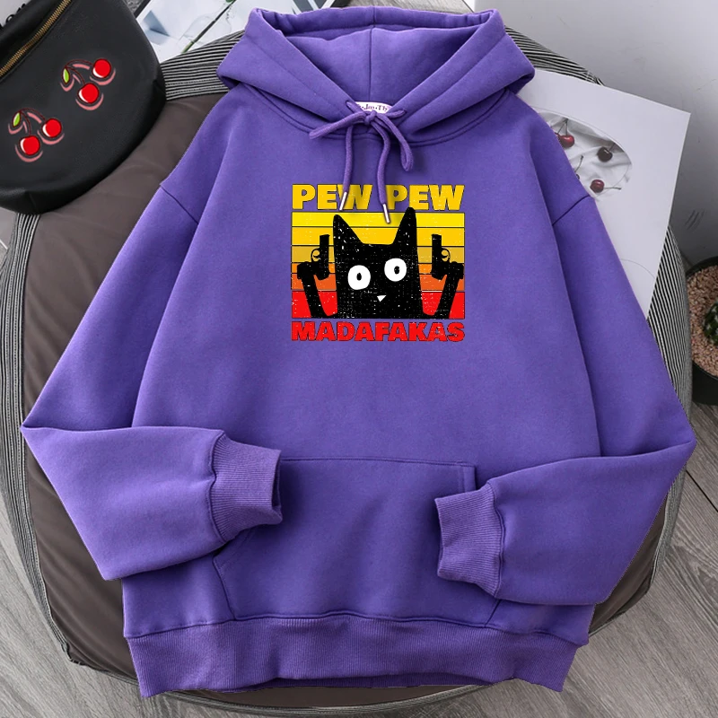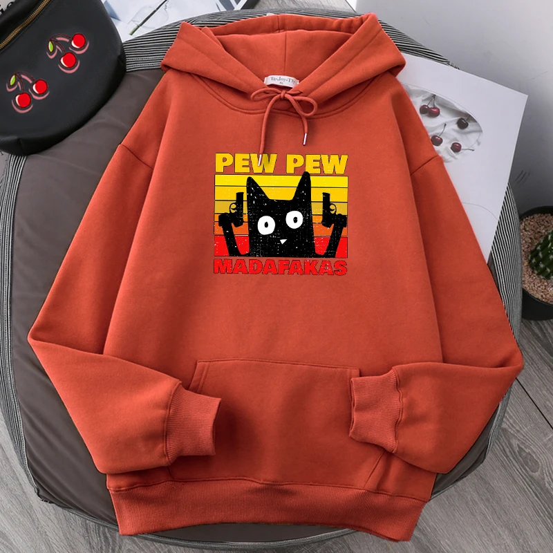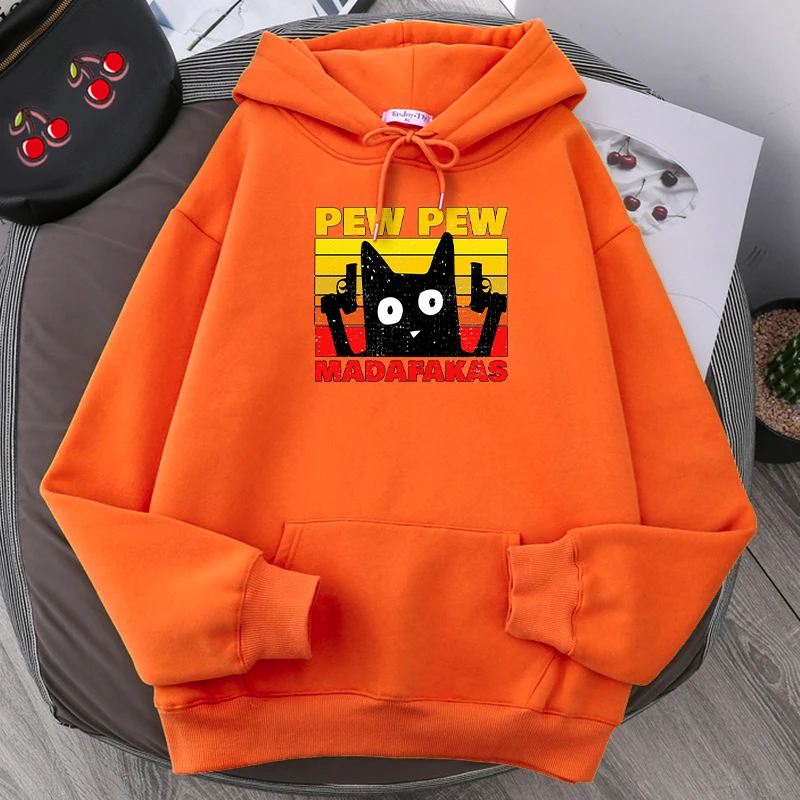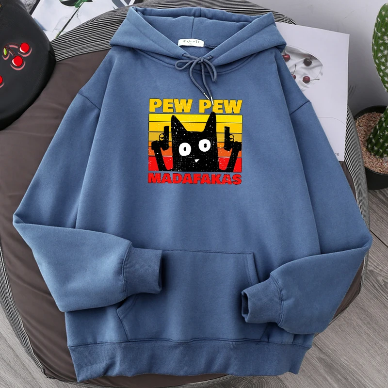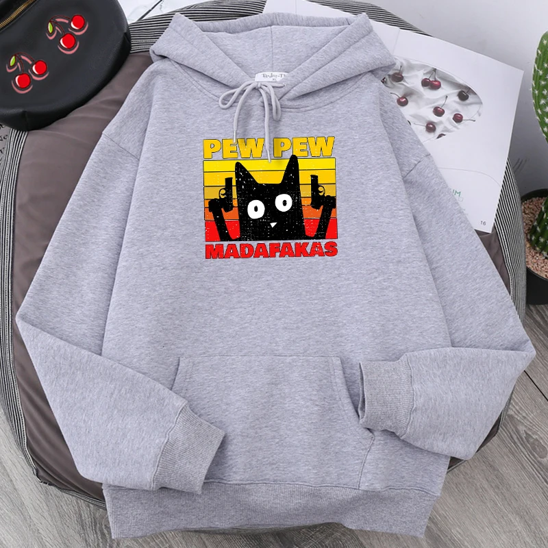 Толстовка мужская Осенняя в стиле Харадзюку, с принтом черного кота