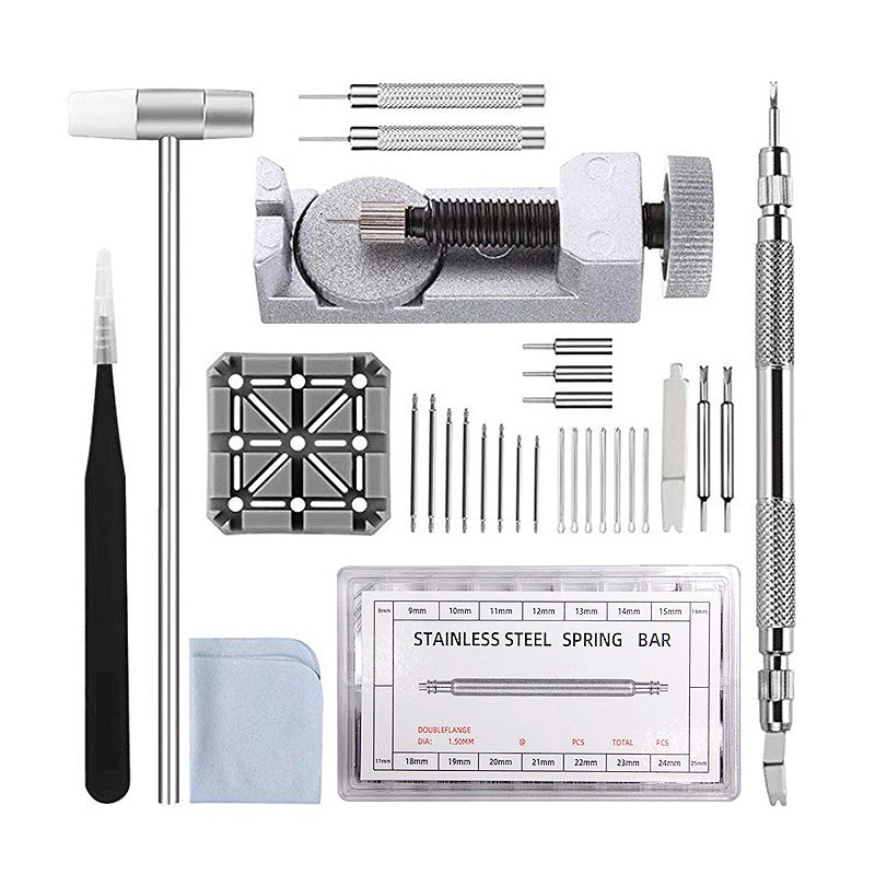 Большой выбор различных размеров штифтов для крепления браслетов во время замены резинок и фиксации часов.