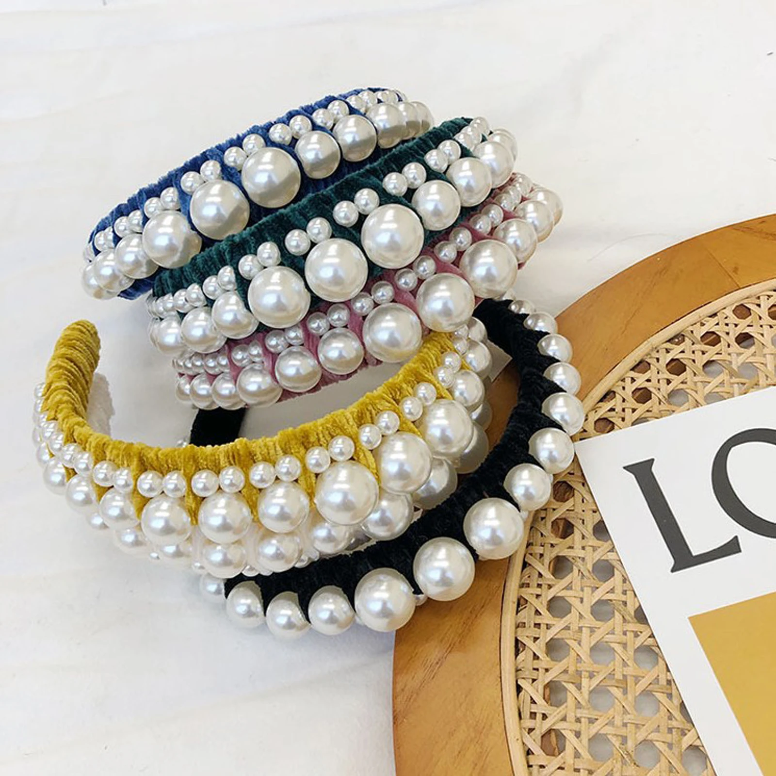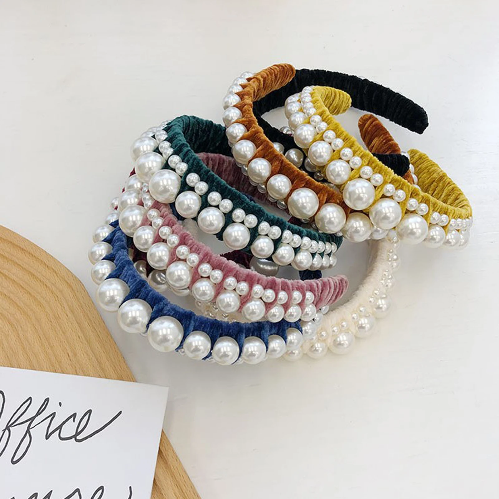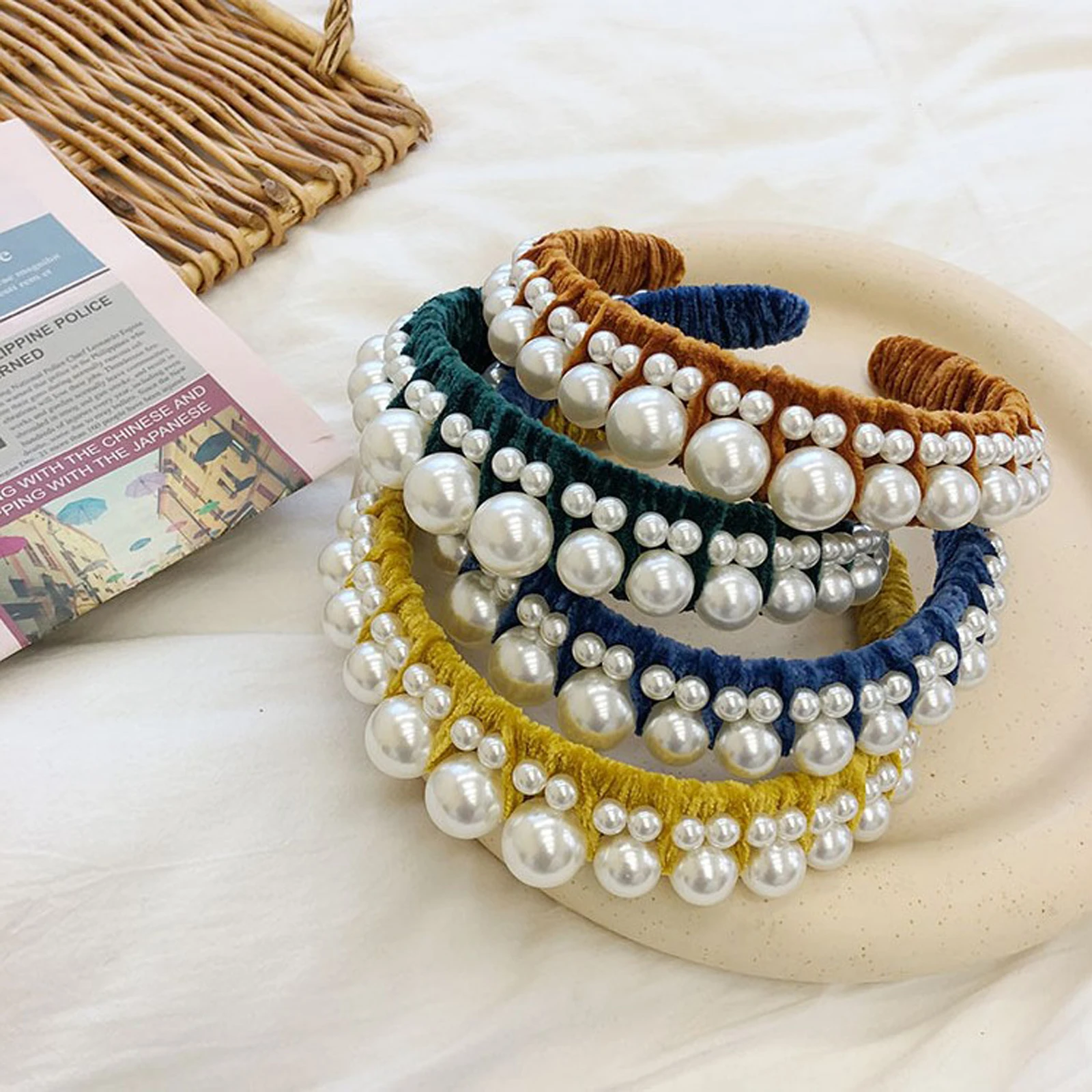 Повязка на голову PROLY плиссированная Женская, бархатный ободок-тюрбан с ручным заводом и жемчугом, аксессуары для волос