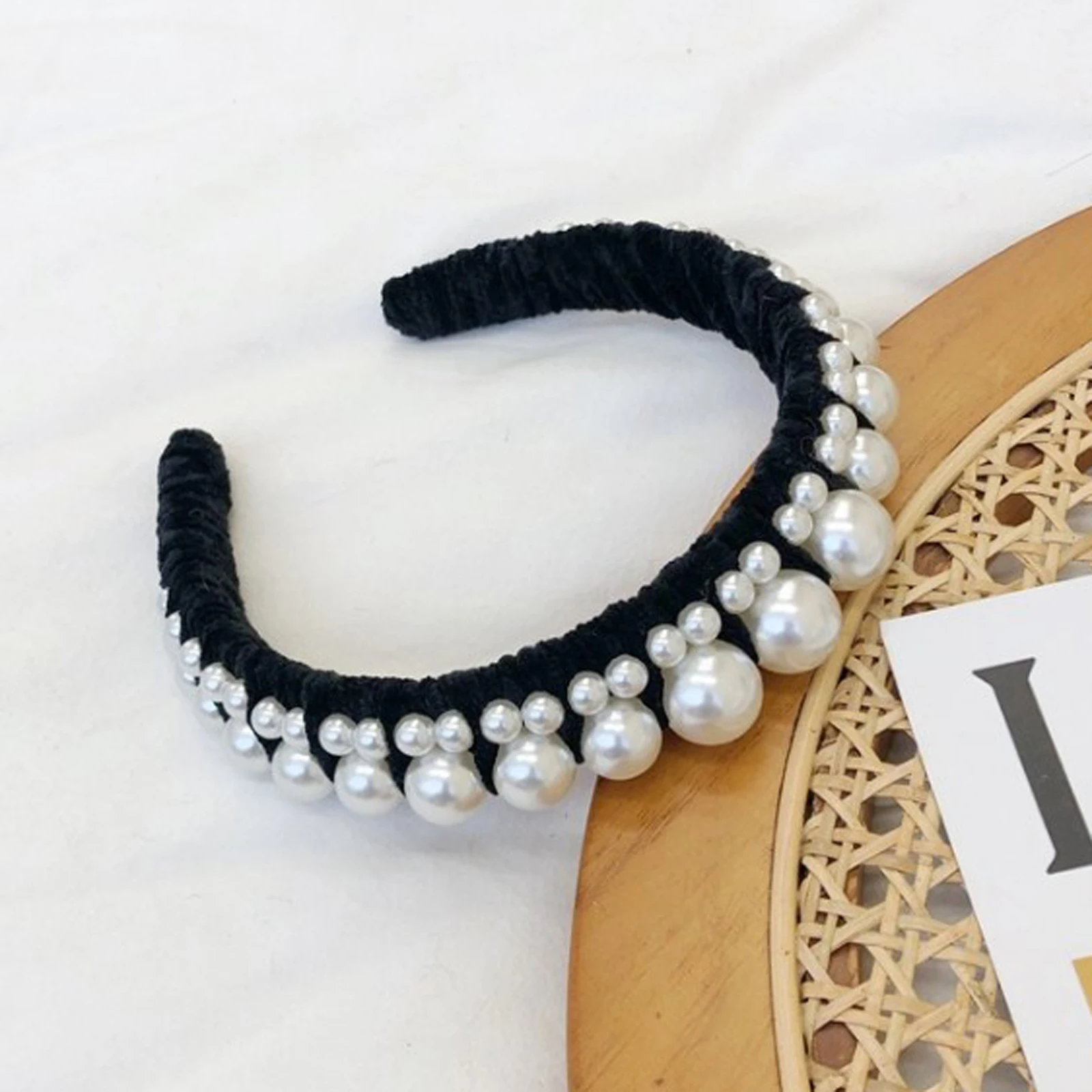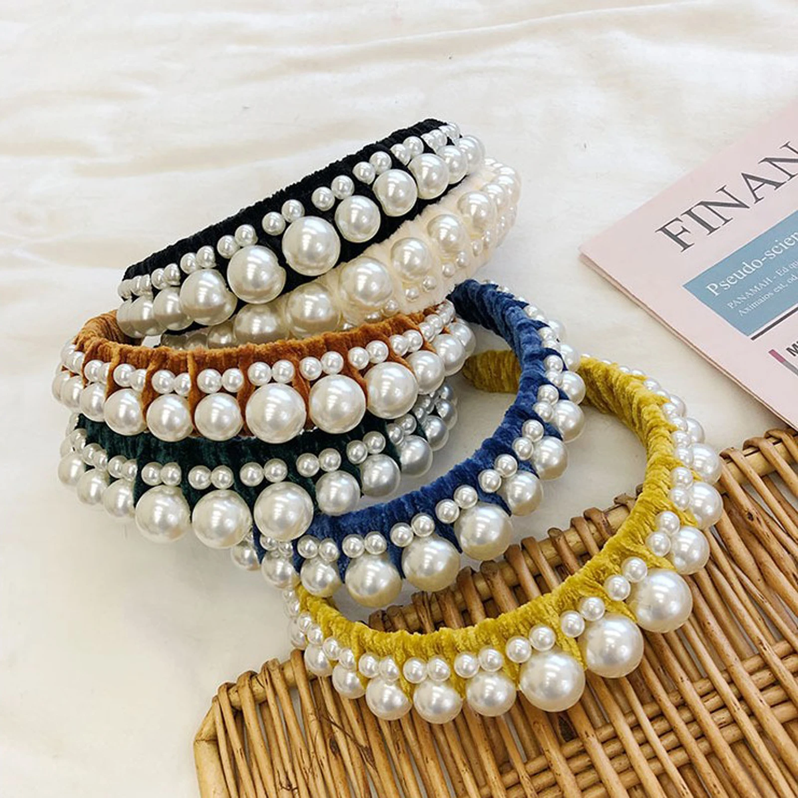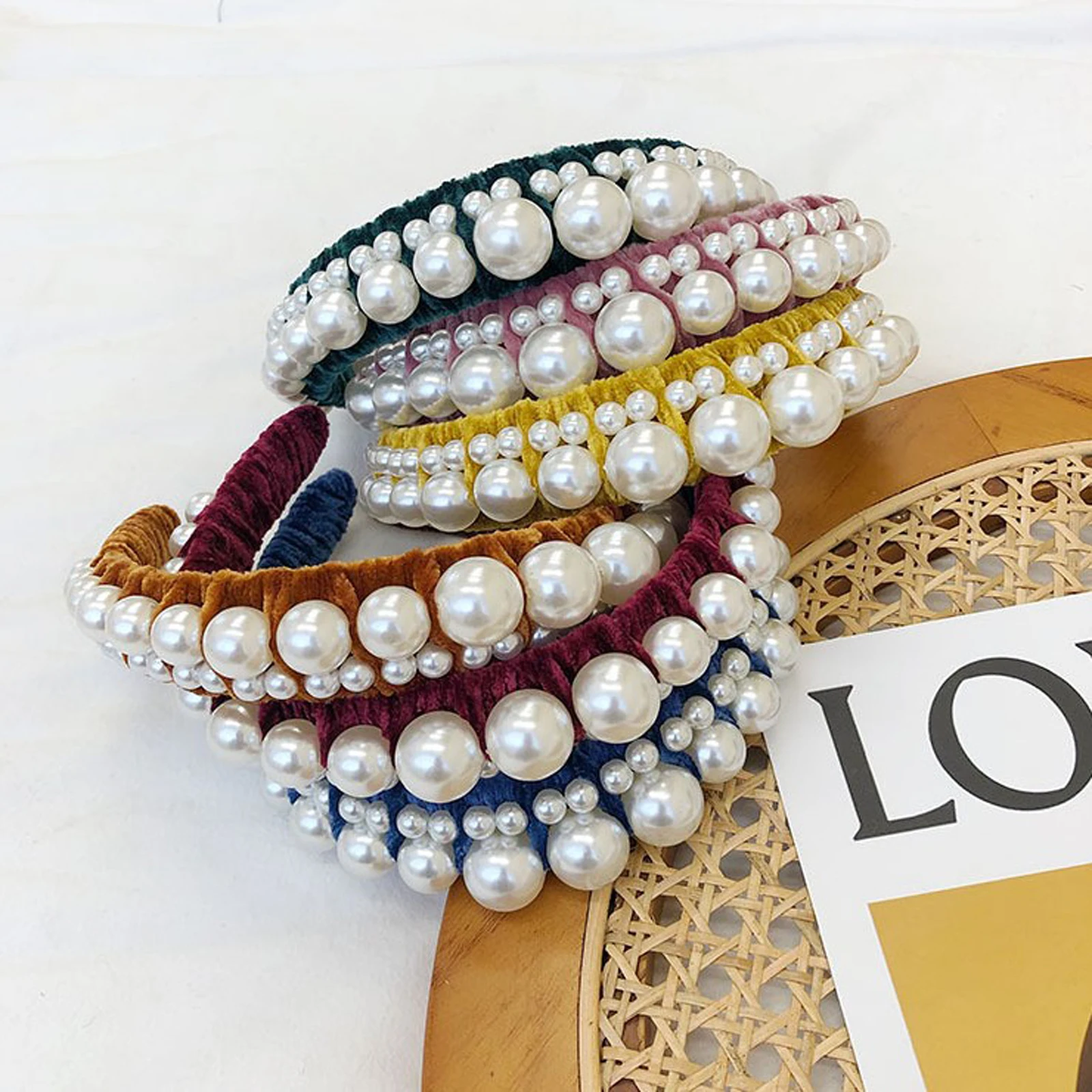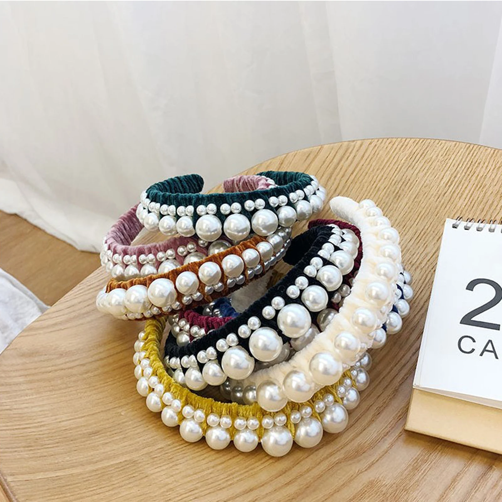 Повязка на голову PROLY плиссированная Женская, бархатный ободок-тюрбан с ручным заводом и жемчугом, аксессуары для волос