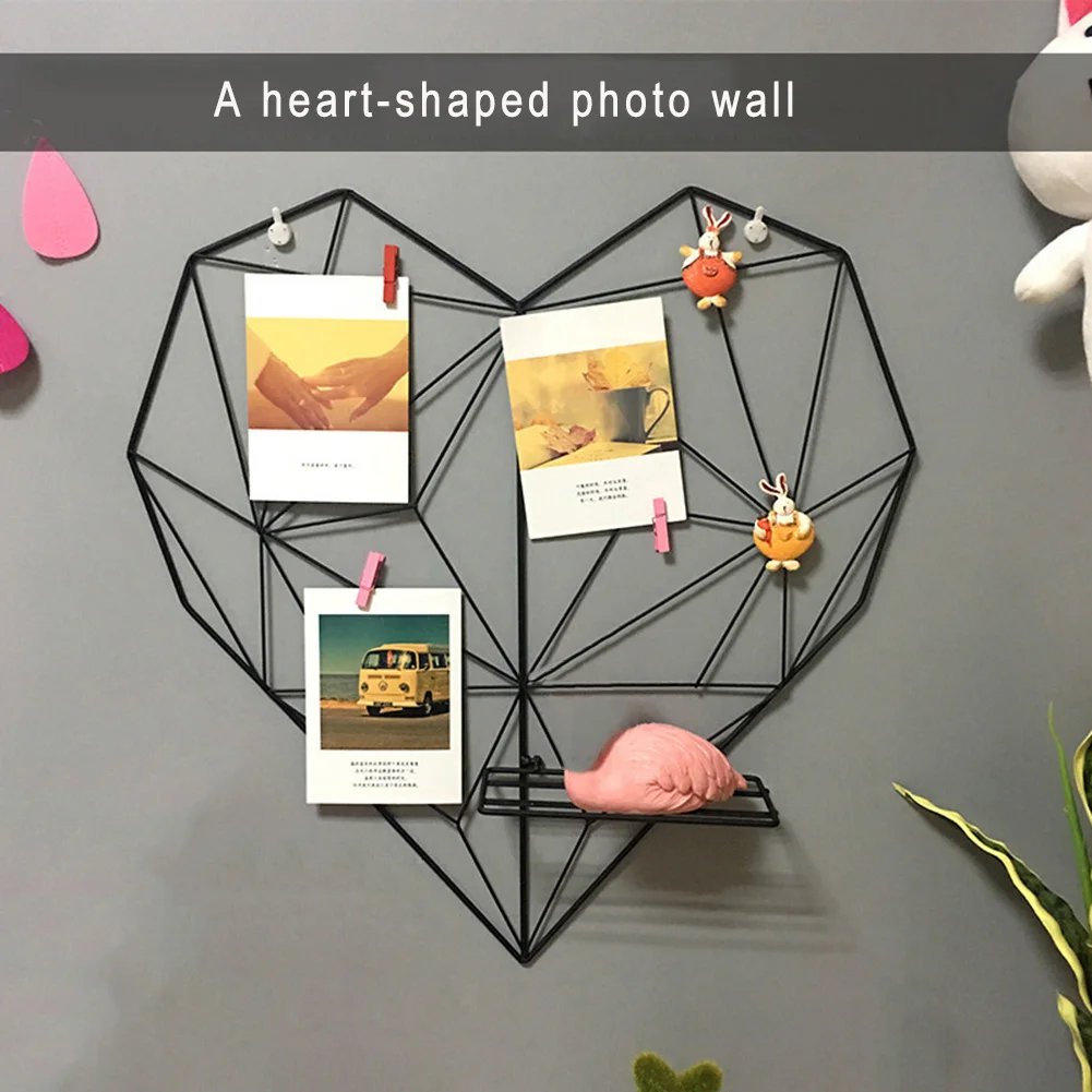 В скандинавском стиле, для дома, металл, кафе, сердце, настенная полка, зажимы, шнуры, фото, рамка для открыток, дисплей, искусство, держатель для хранения, Декор