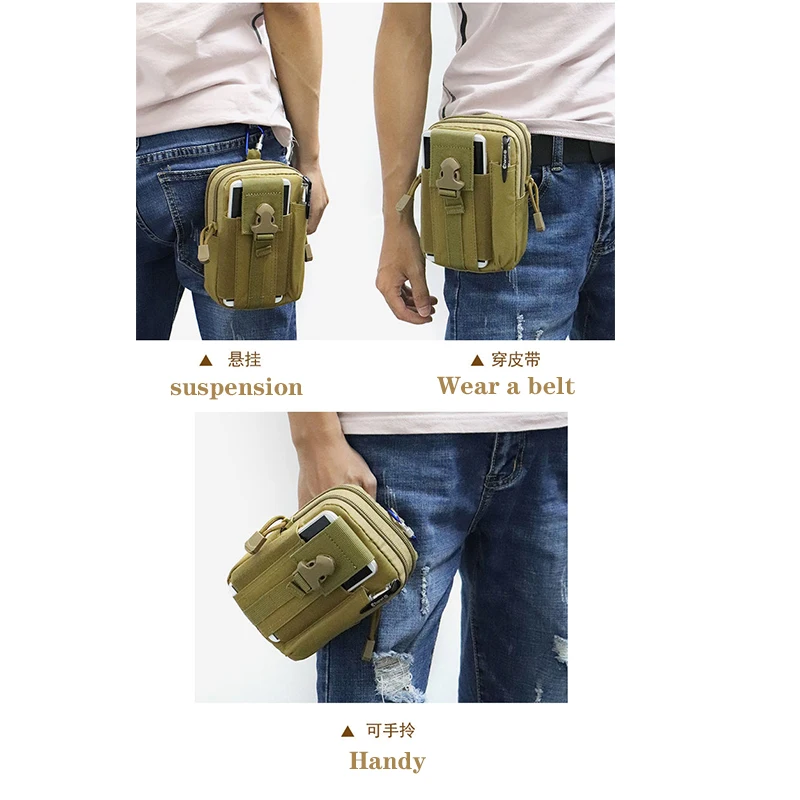 -Изготовлен из водонепроницаемого нейлона 1000D, что обеспечивает легкий и прочный светильник. -Можно прикрепить к рюкзаку или поясу, поэтому плотно прилегает к талии брюк. -Много карманов внутри с большой емкостью и много вещей можно положить в. -Может переносить мобильные телефоны, ручки, сигареты, кошельки, карабины и другие предметы для кемпинга. -Отлично подходит для активного отдыха, тактических видов спорта, пеших прогулок, альпинизма, повседневного использования и т. д.