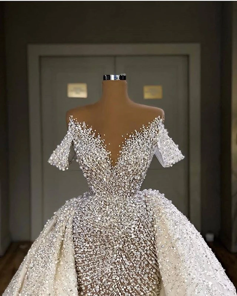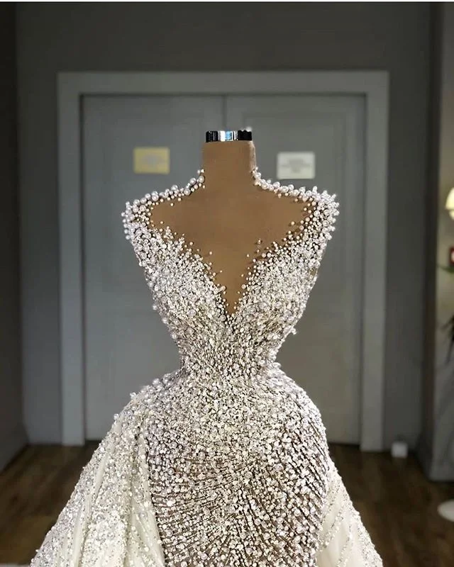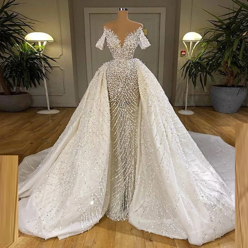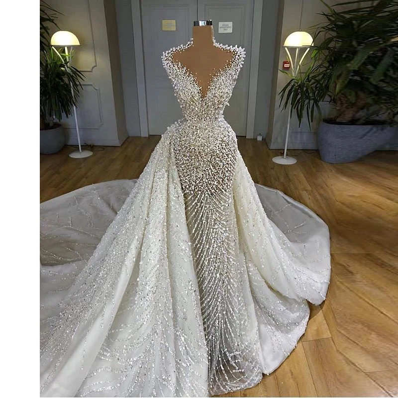 Женское свадебное платье со съемными бусинами, белое платье без рукавов со шлейфом, 2020