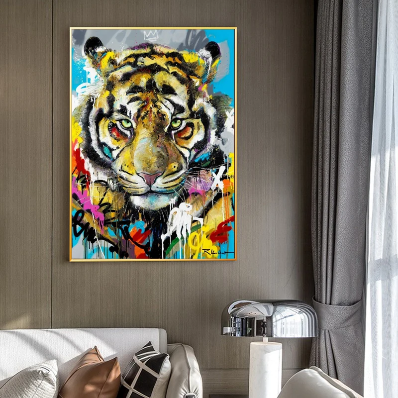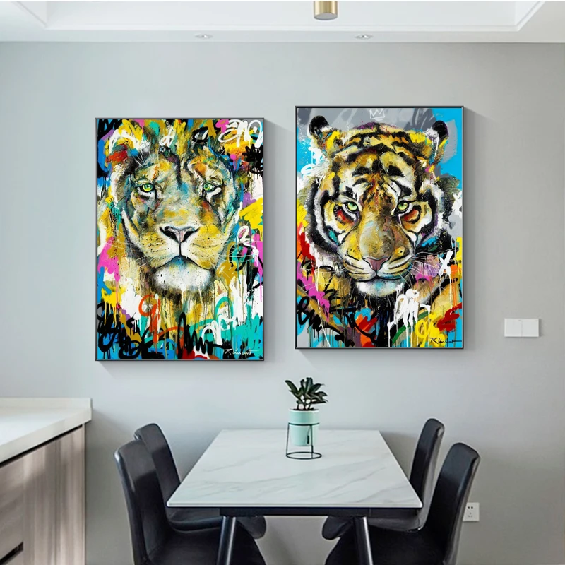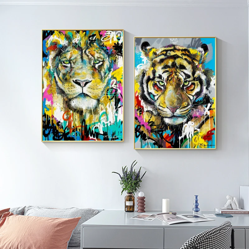 Красочные лев тигр картина с рисунком животных граффити художественные плакаты и принты настенные картины для гостиной современный домашний декор