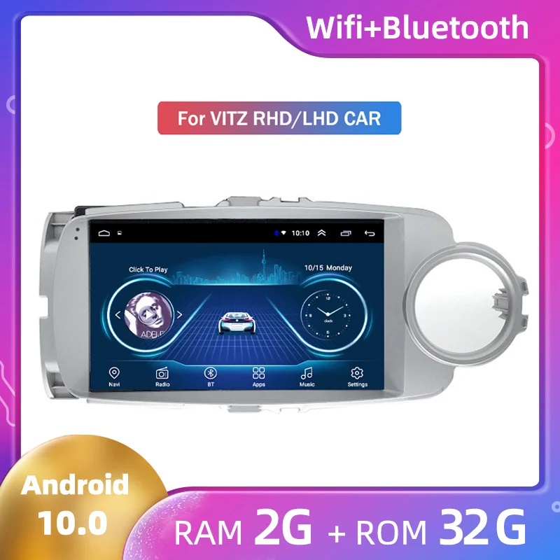 Популярный автомобильный стерео Мультимедийный плеер Android 10 стерео 2 ГБ + 32 ГБ для Toyota Vitz RHDLHD Автомобильный большой центральный экран GPS-навигатор