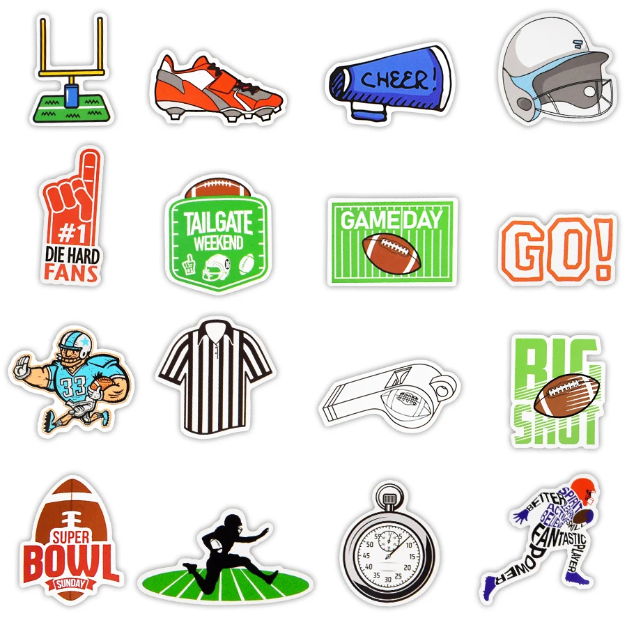 50 шт. для регби, спортивных наклеек, игровой день, Футбольная тематическая вечеринка, водонепроницаемая наклейка, s подарок, сделай сам, чемодан для ноутбука, автомобильные наклейки и наклейки