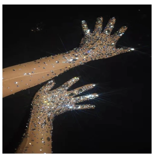 Женские длинные перчатки с блестящими кристаллами, модные Стрейчевые перчатки для стразы, ночной клуб, танцор, певец, сценическая одежда