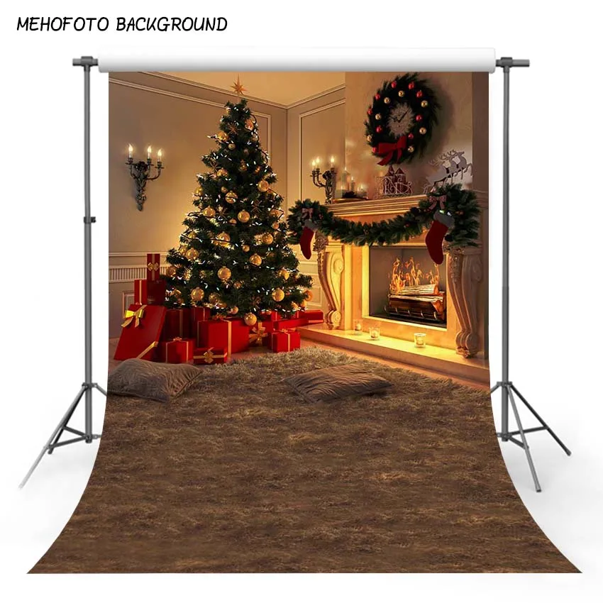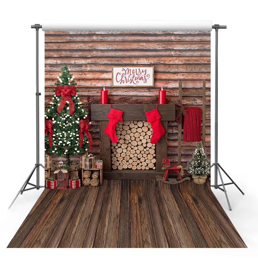 Рождественский фон для фотостудии Зимний снег рождественская елка Гирлянда для камина деревянный пол фон для фотостудии