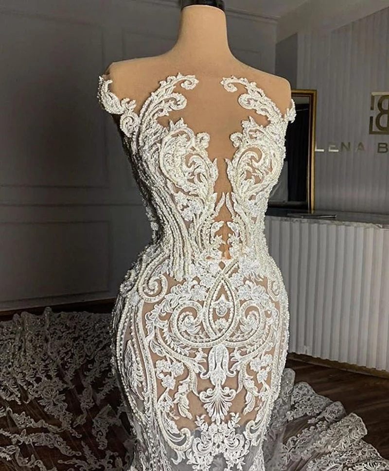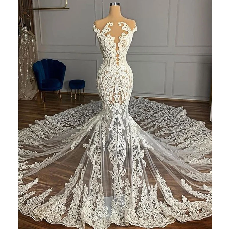 Винтажные кружевные иллюзионные Свадебные платья 2020, прозрачные Свадебные платья без рукавов, со шлейфом, молнией на спине, индивидуальный пошив, свадебные платья