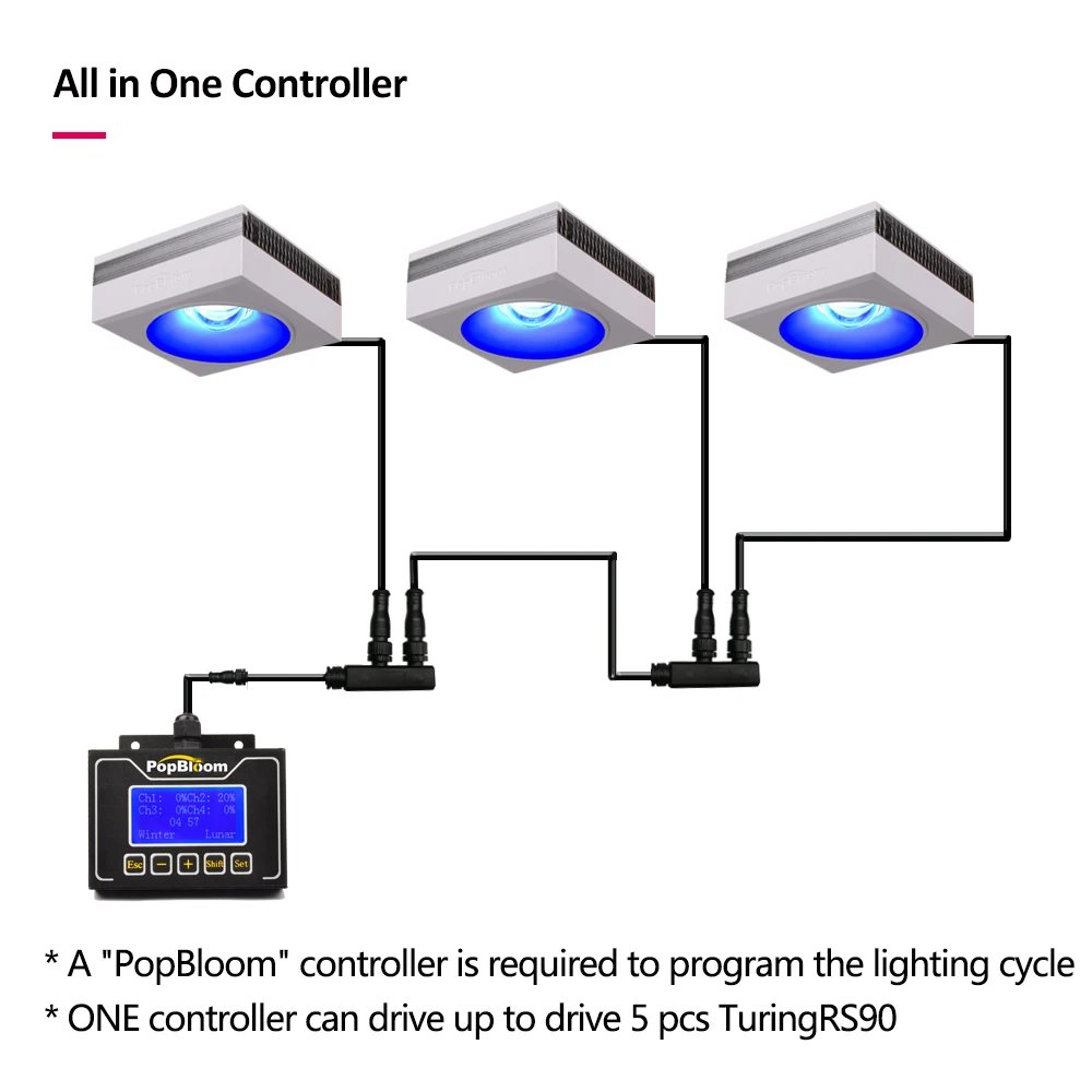 PopBloom, морской аквариум, светодиодный светильник для аквариума, освесветильник для аквариума, светодиодный светильник льник для аквариума, умный контроллер Turing RS90