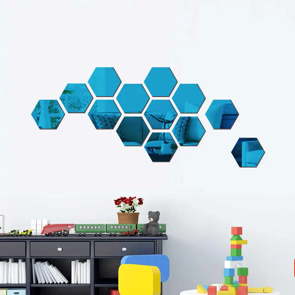 12 шт.компл. 3D зеркальные настенные Стикеры для домашнего декора, шестигранные украшения, самодельные наклейки, художественные украшения для гостиной, столовой, разные цвета