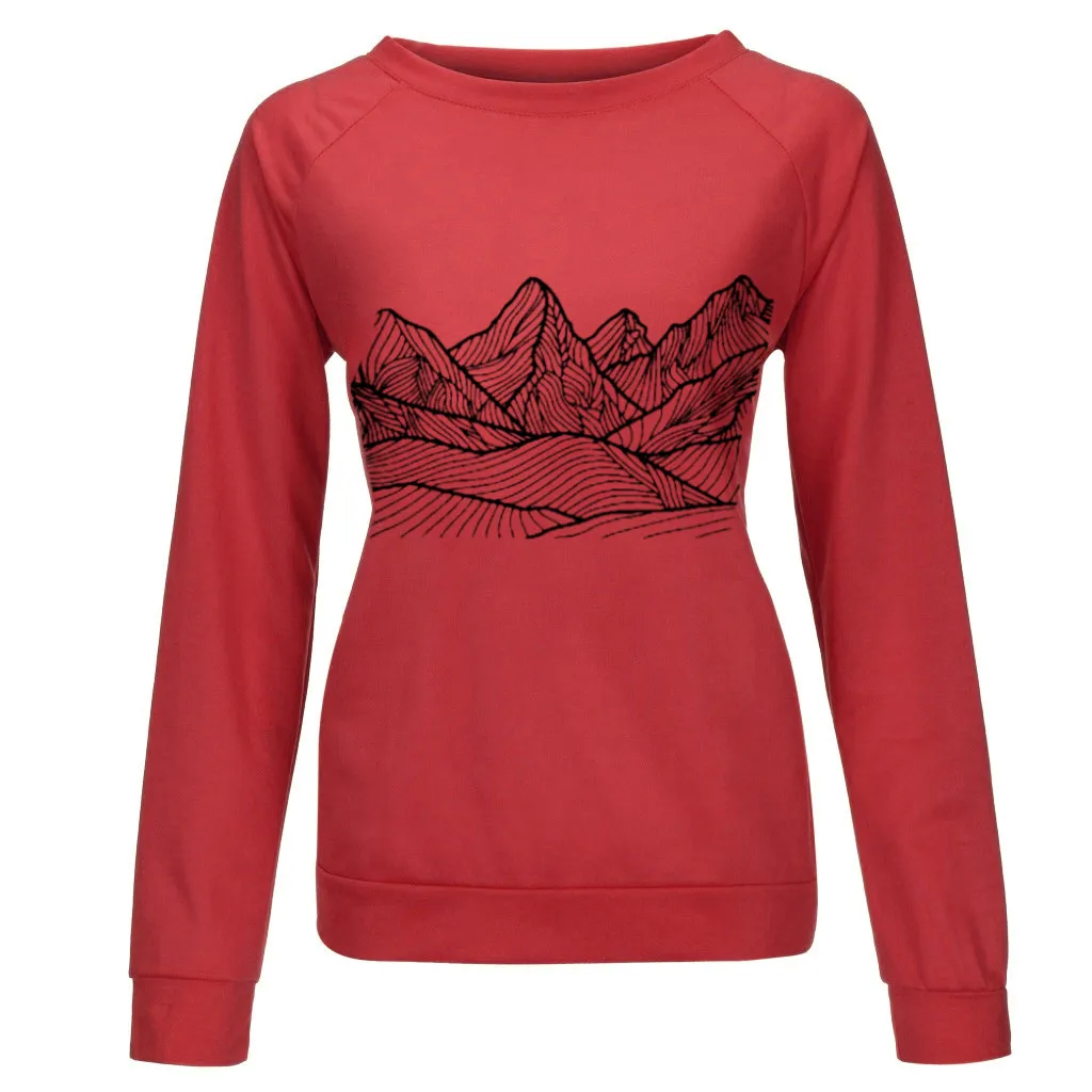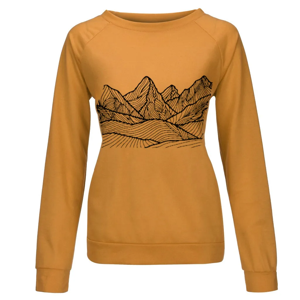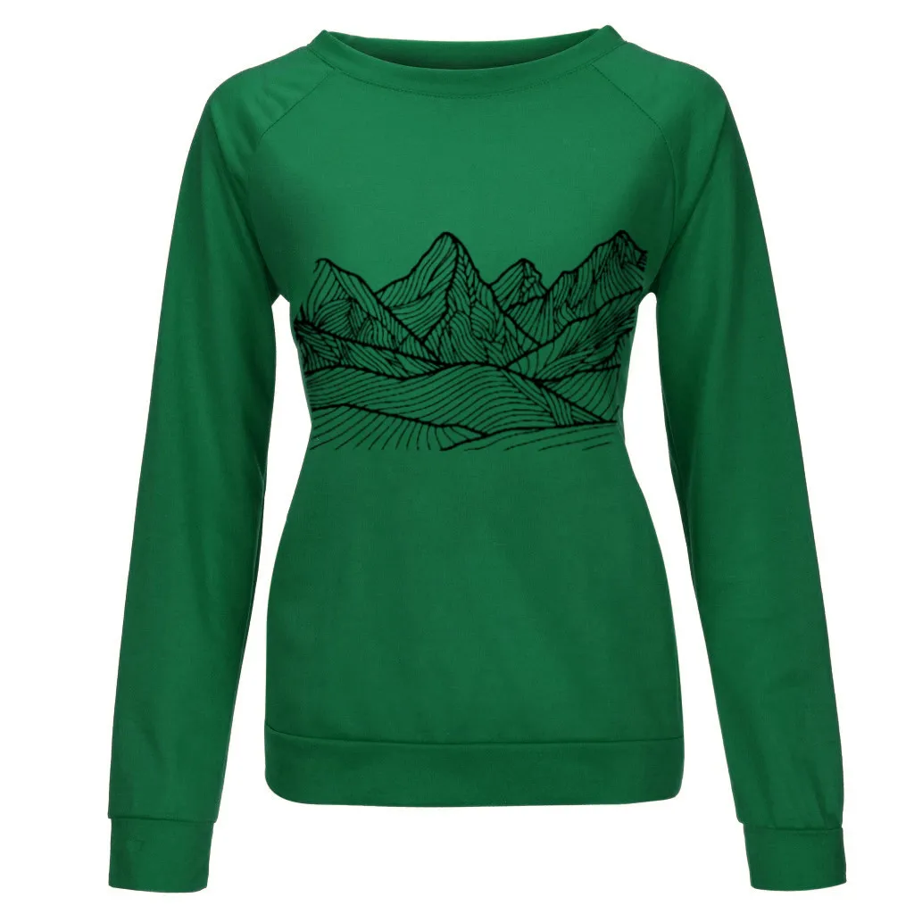 Женский свитшот с рисунком гор, с длинным рукавом, о-образным вырезом, Повседневный пуловер с принтом, элегантный осенний Женский свитшот