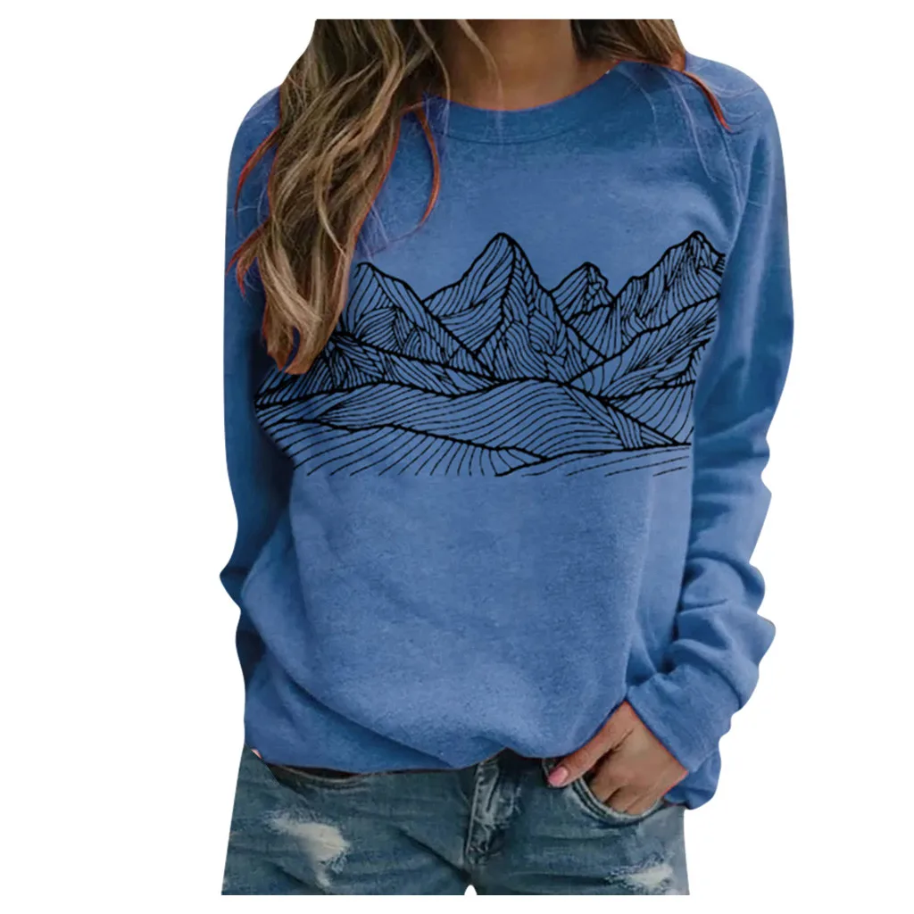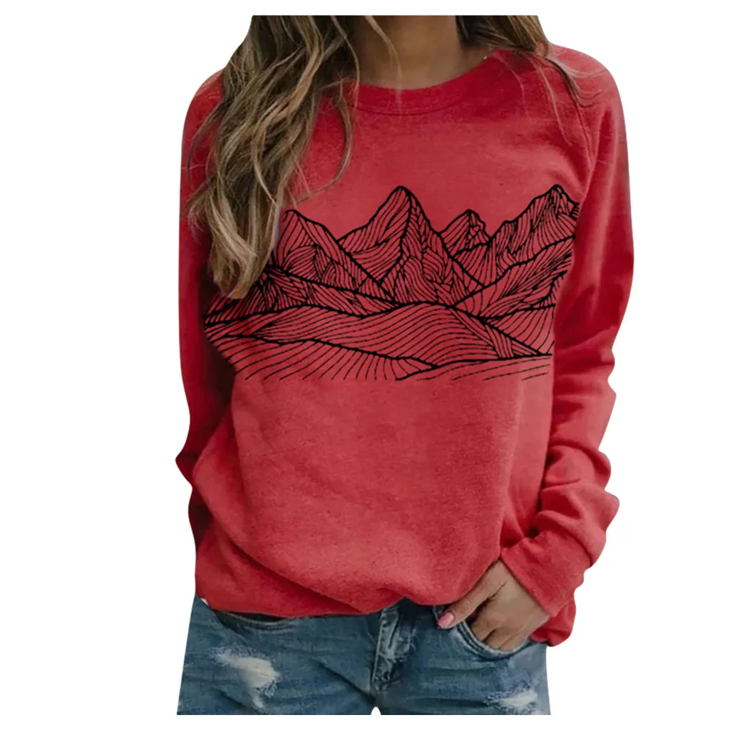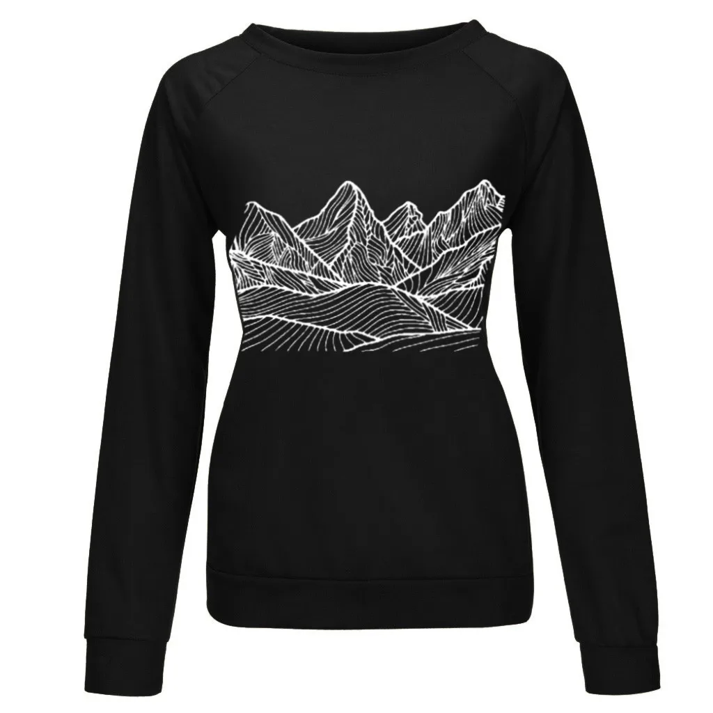 Женский свитшот с рисунком гор, с длинным рукавом, о-образным вырезом, Повседневный пуловер с принтом, элегантный осенний Женский свитшот