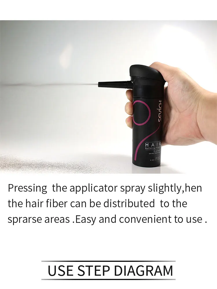 3 шт./компл. удовлетворить ваши потребности, набор для удобства в использовании.Технические характеристики:Сделанный из натурального цветного кератинового белка, который статически заряжен, SEVICH волокна переплетаются с вашими существующими волосами для совершенно естественного вида.SEVICH противостоит ветру, дождю и поту, но легко удаляет с помощью шампуня.