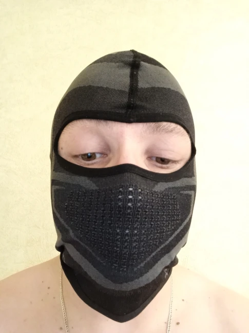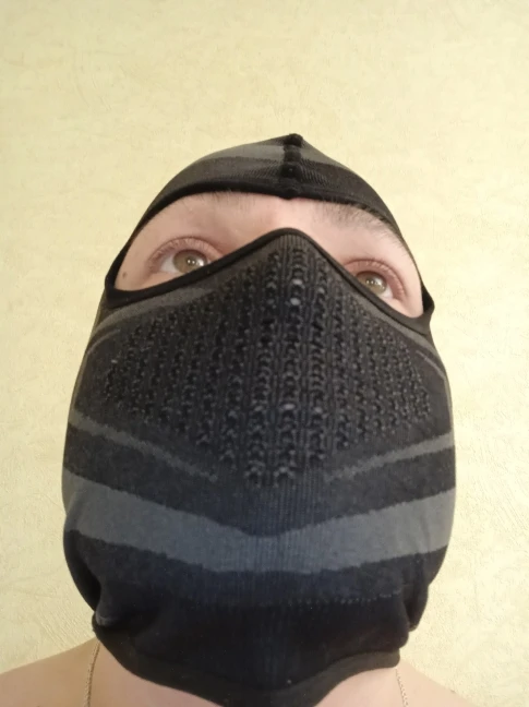 Балаклава супер, тёплая, шея хорошо закрыта! Слегка пахнет, но после стирки все отлично!