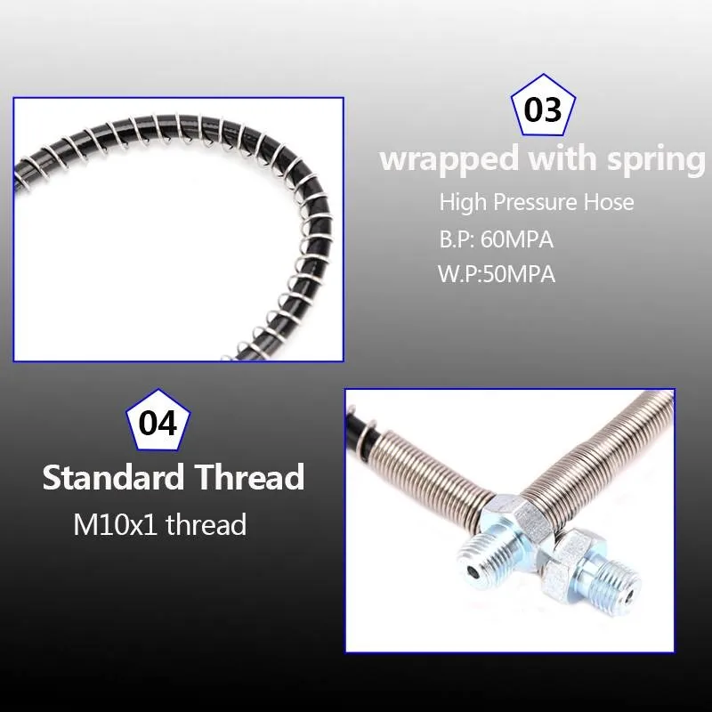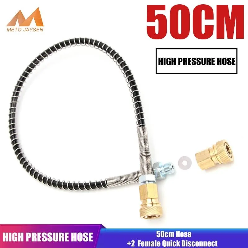 Шланг высокого давления M10x1 Резьбовая нейлоновая воздушная заправка 50 см, обернутая пружиной из нержавеющей стали и быстроразъемными фитингами