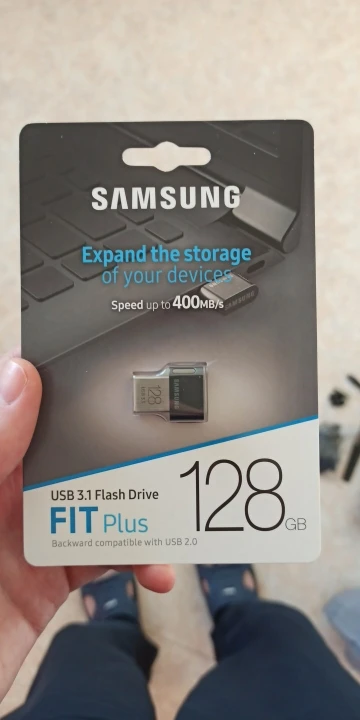 Флэшка дошла до Москвы за 2 недели. Была отлично упакована в пупырку и фирменную упаковку. Я использую аналогичную флэшку по полной каждый день уже больше года и она ни разу не подводила, поэтому решил взять вторую такую же. На фото старая и новая. В комплекте шел фирменный ремешок Samsung. Спасибо продавцу!