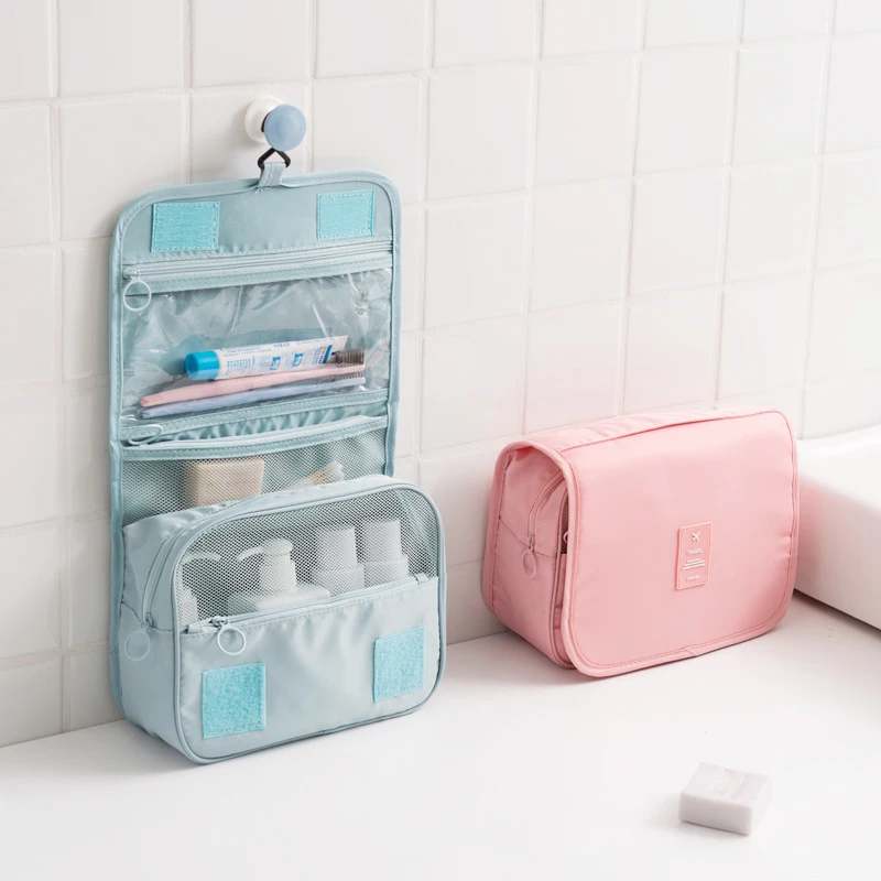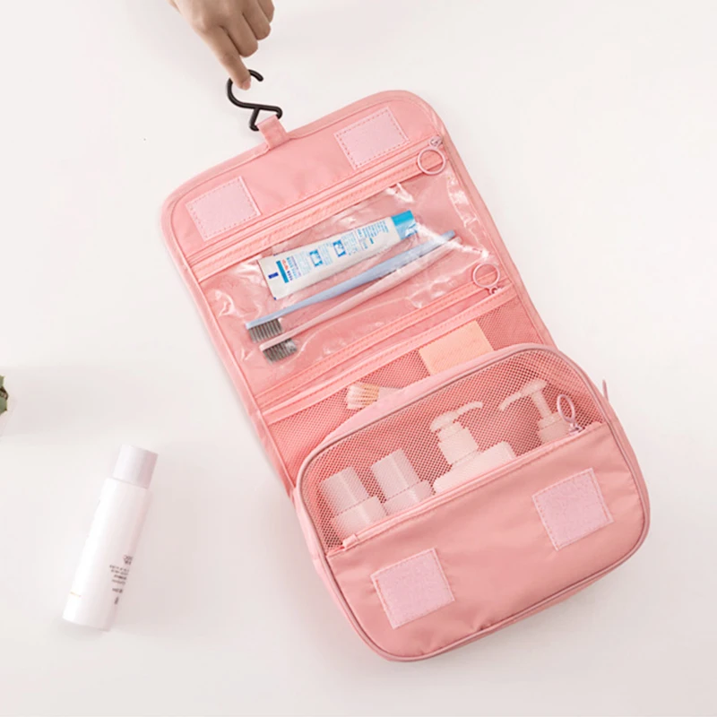 Дорожная косметичка, однотонная сумка для косметики с крючком, чехол для туалетных принадлежностей, органайзер для хранения, многофункциональные сумки для косметики