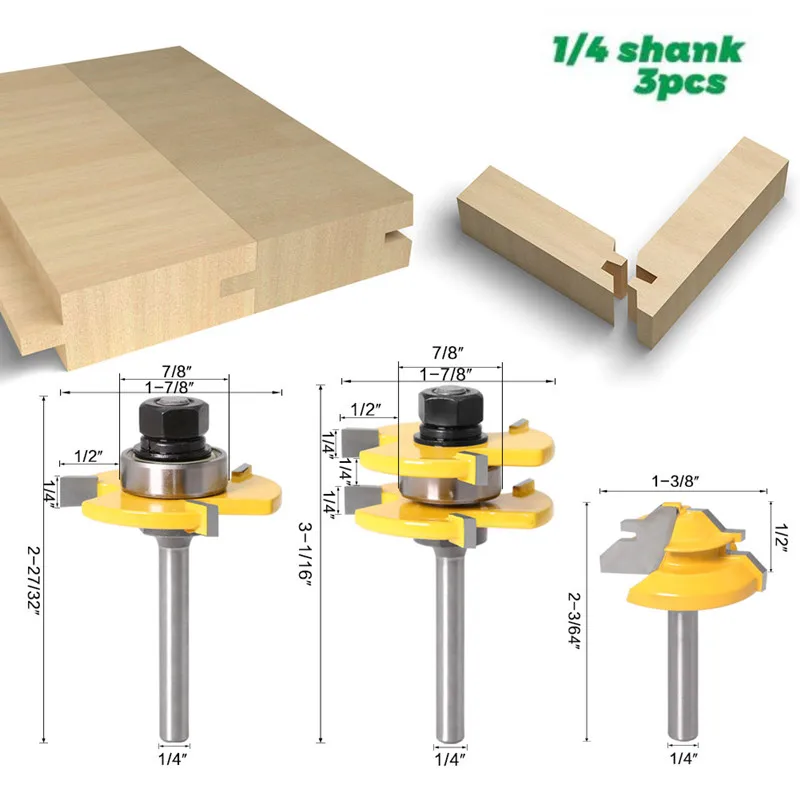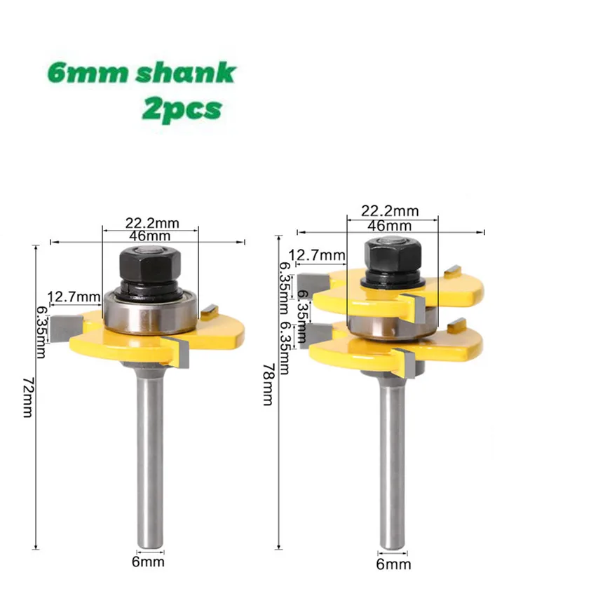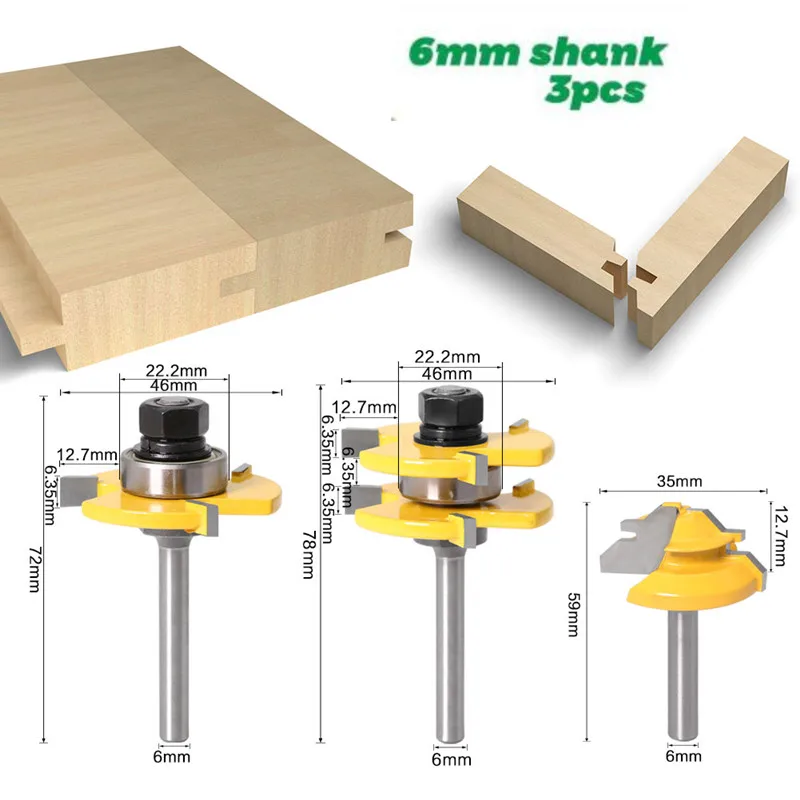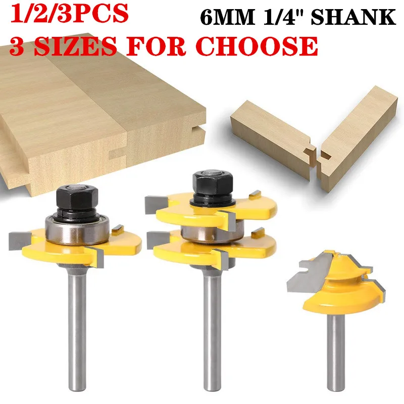 Концевая фреза для шпунтового и пазового соединения, 1-3 шт., с небольшим угловым соединением под углом 45 градусов, для резки дерева-хвостовик 6 мм 14 дюйма