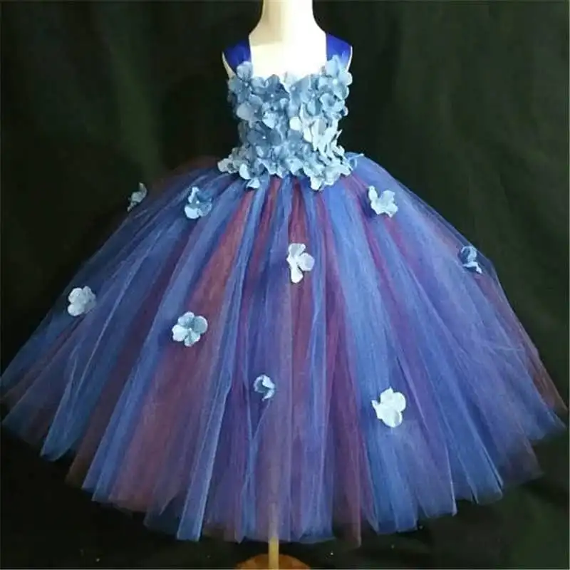 Платье-пачка с цветочным принтом гортензии для девочек, элегантное платье для маленьких девочек платье до щиколотки для свадьбы, дня рождения бальное платье