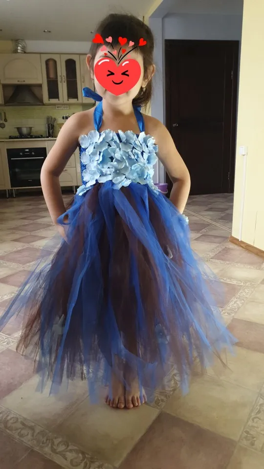 Платье по размеру, низ разрезаные полоски не сшитые, просто привязаны к верхней части платья.