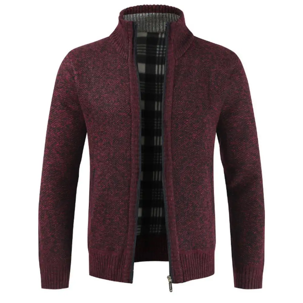 Кардиган осенне-зимний мужской вязаный свитер с карманами с плюшевой подкладкой теплый свитер мужской облегающий кардиган пальто мужская одежда свитер