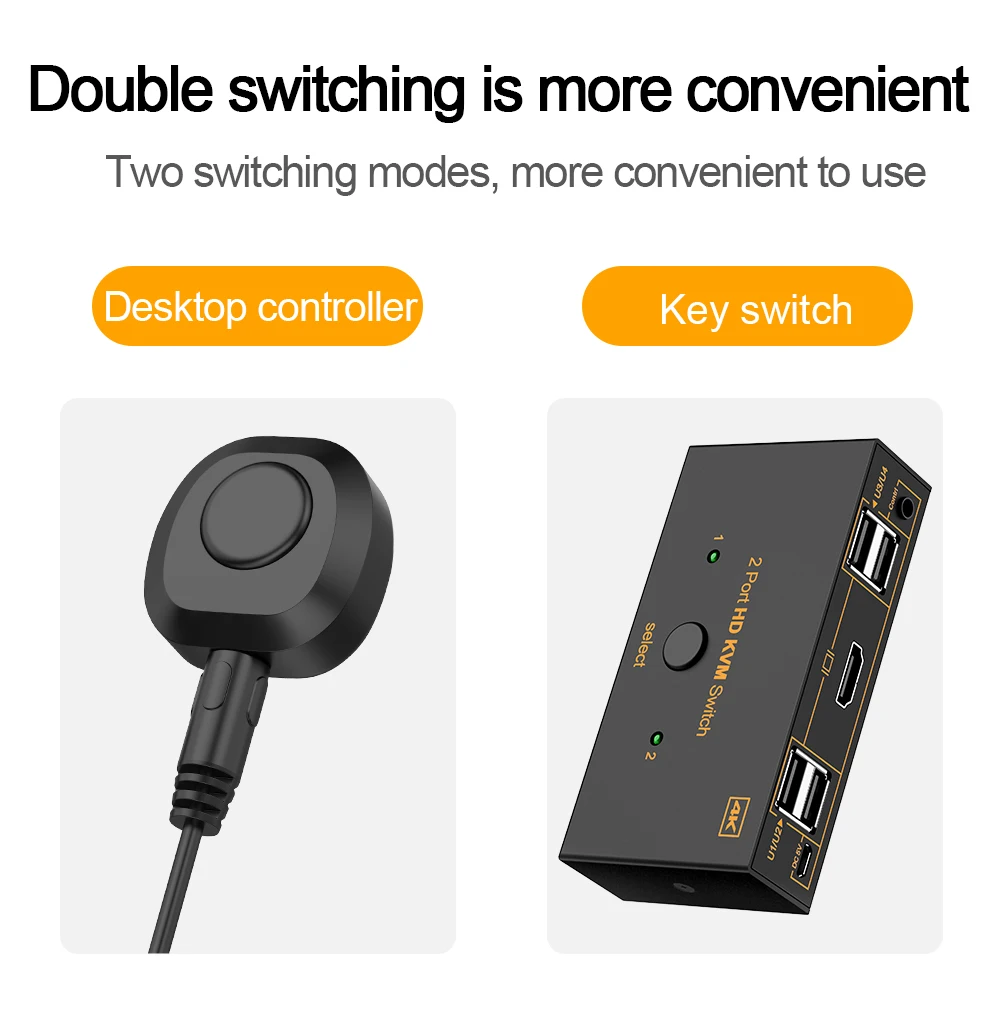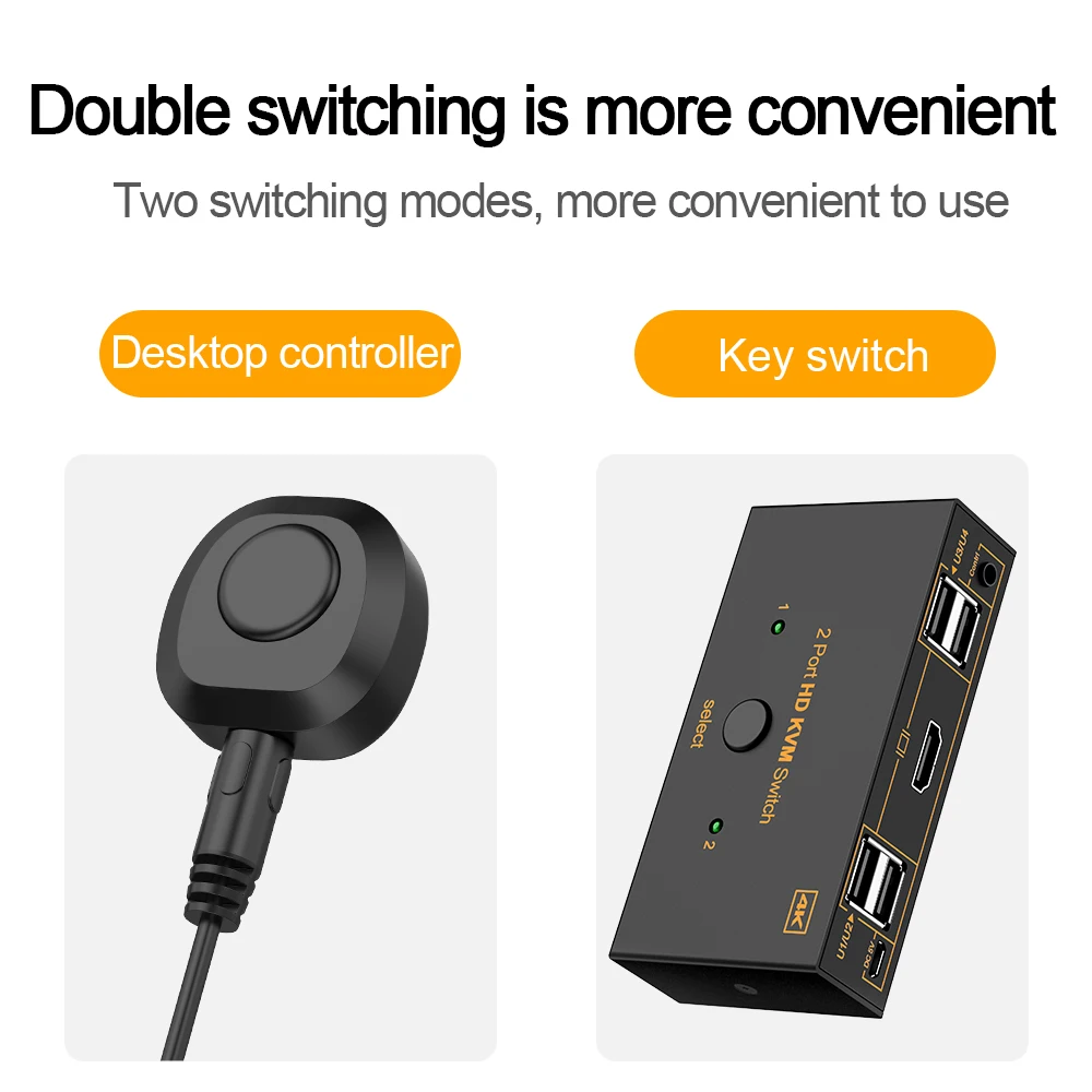 Rocketek KVM switch USB 2,0 HDMI-совместимый 4K Splitter Принтер Мышь Клавиатура Share Switcher Box Компьютерный контроллер адаптер