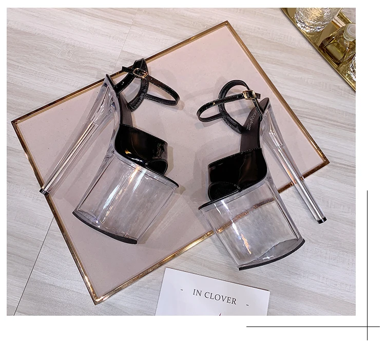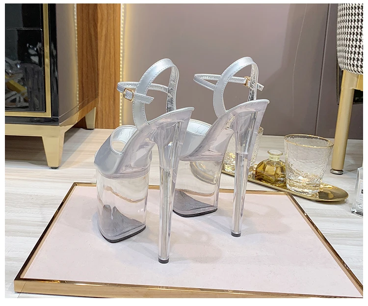 Женские босоножки с прозрачными кристаллами на платформе и высоком ...