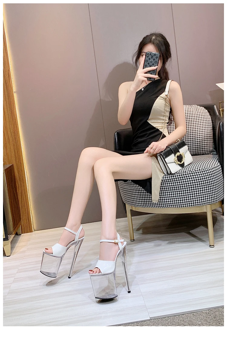 Женские сандалии, модельные туфли на высоком каблуке 20 см, из лаки...