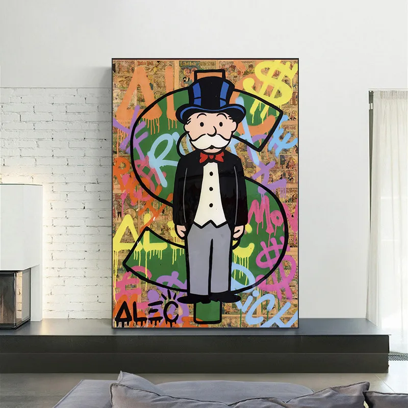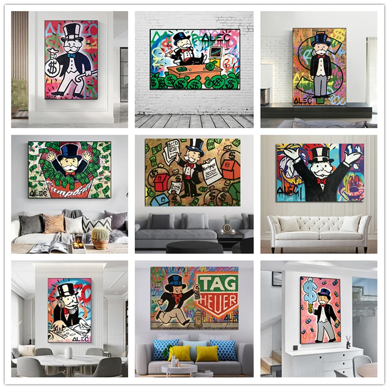 Алек монополия, граффити искусство стены, картина с деньгами на стене, мир печати на плакате-ваше современное искусство