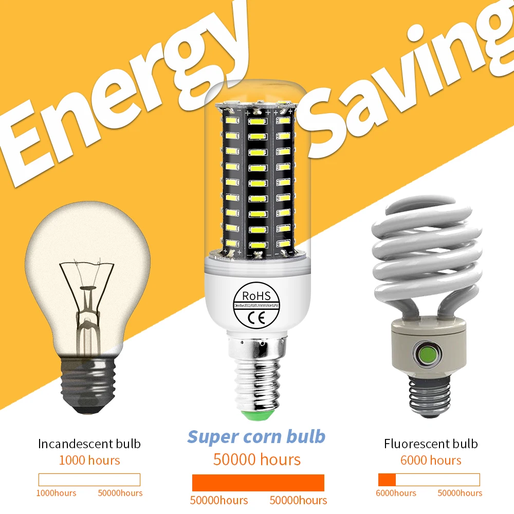 Светодиодная лампочка E27, лампочка-кукуруза 3 Вт, 5 Вт, 7 Вт, 9 Вт, свечная лампа E14, умные лампочки 220 В, светодиодная лампочка SMD 4014, Энергосберегающая лампочка для дома