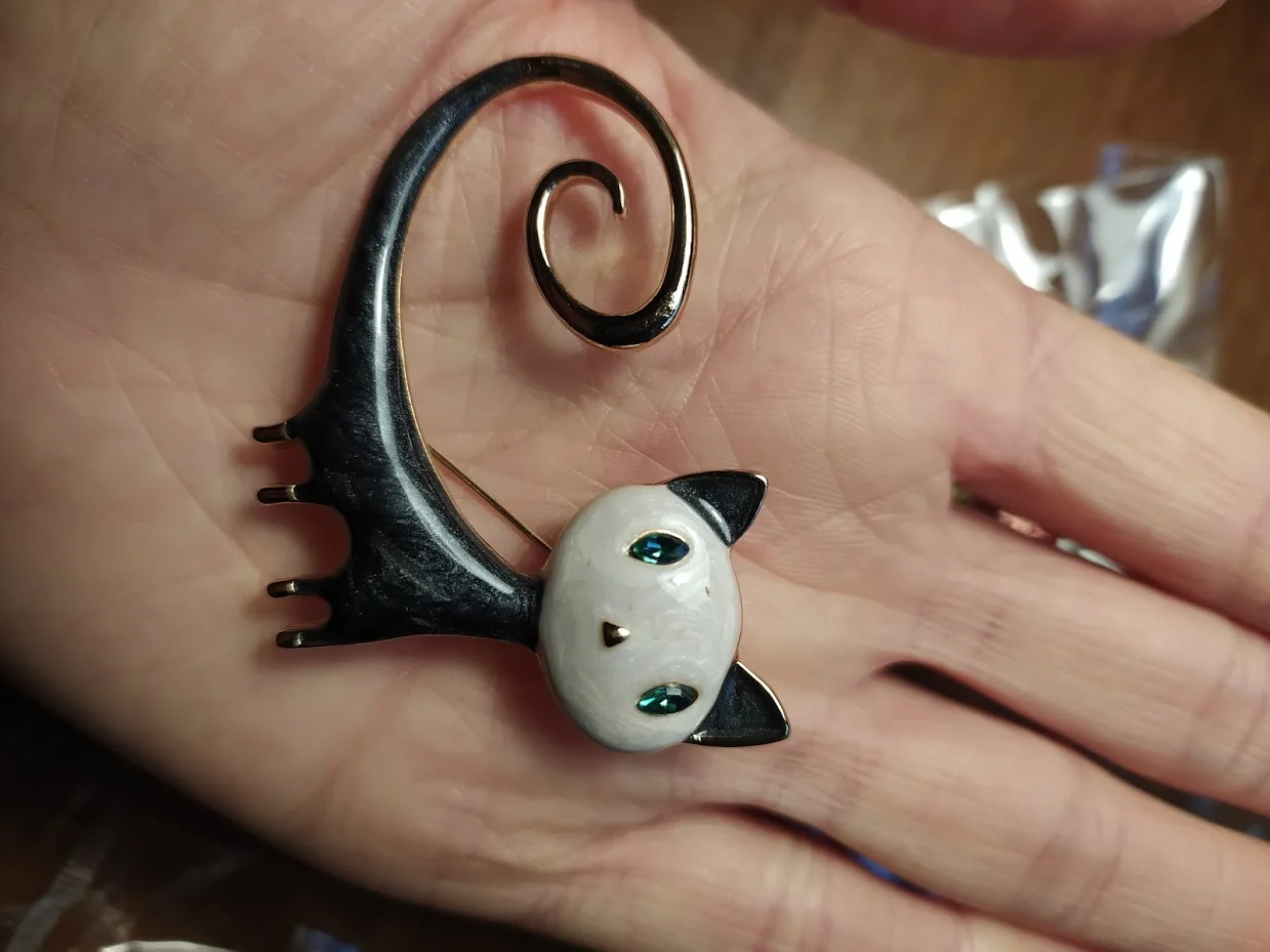 Очень крутые броши у этого продавца! Котика можно носить как брошь и как кулон, есть соответствующие крепления. Рекомендую