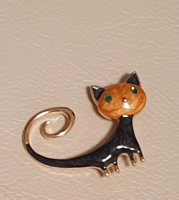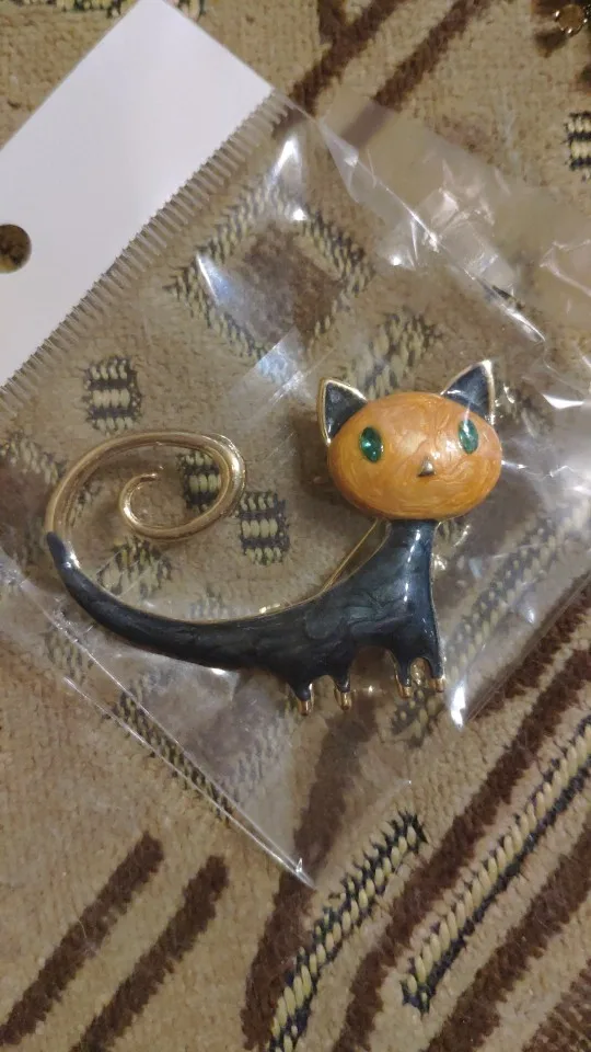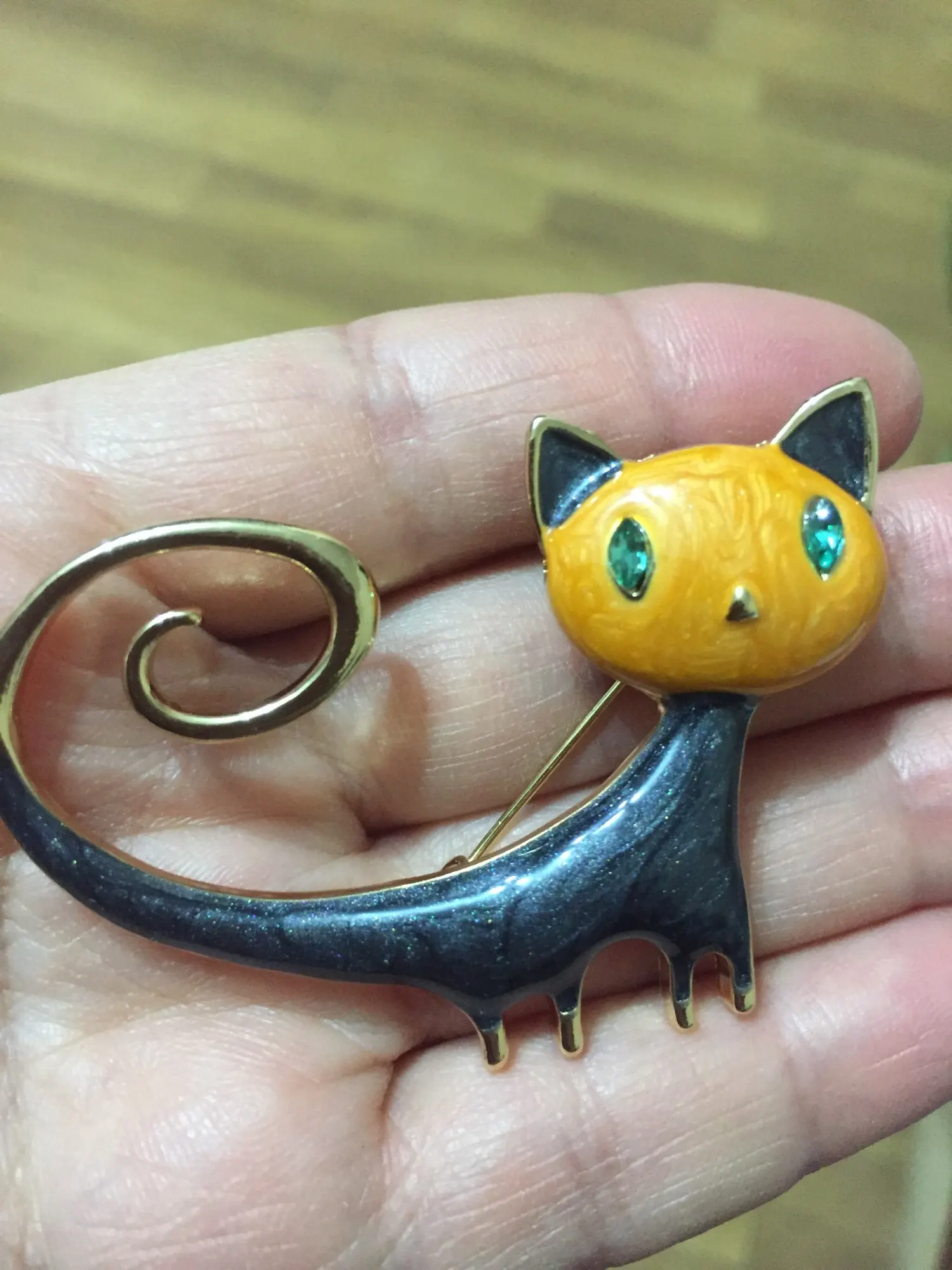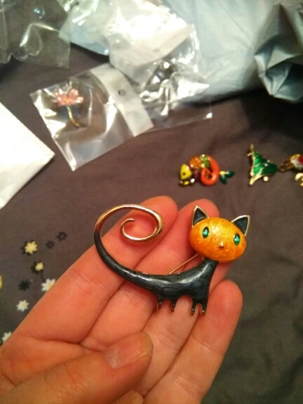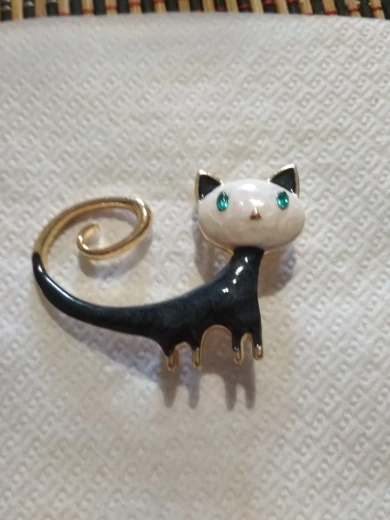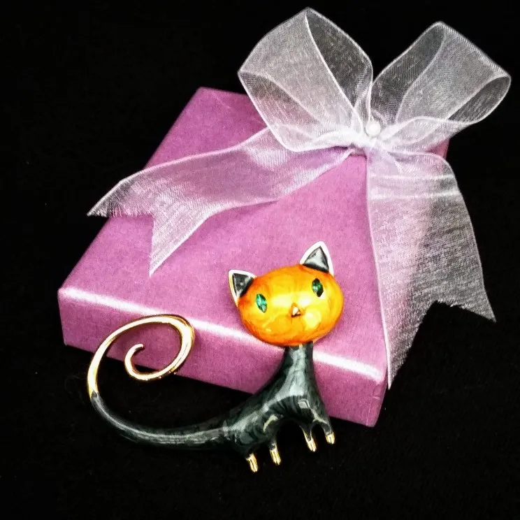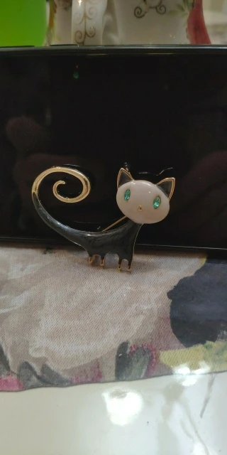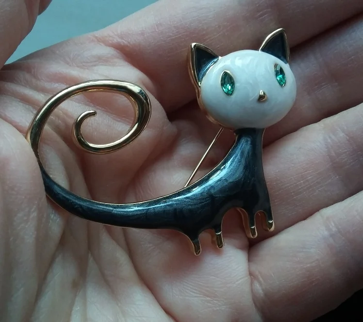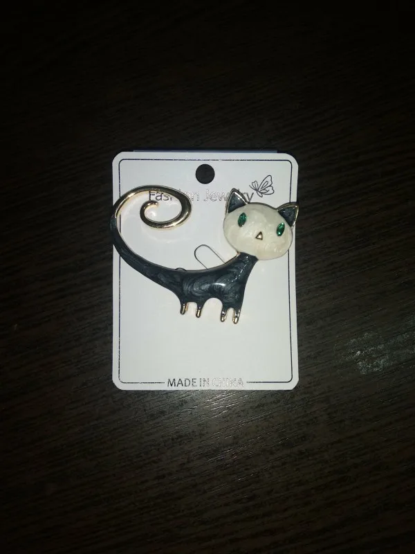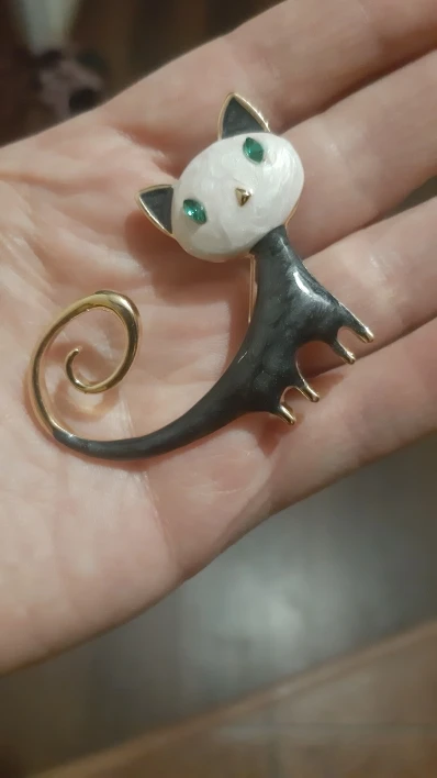 Очень довольна. Все броши красивые, как всегда. Застёжки хорошие. Доставили много радости. Эта брошь к кошкой очень милая, молодёжная, эмаль не совсем чёрная, немного перламутровая, красивый перелив. Доставка - один месяц. Рекомендую магазин и продавца.