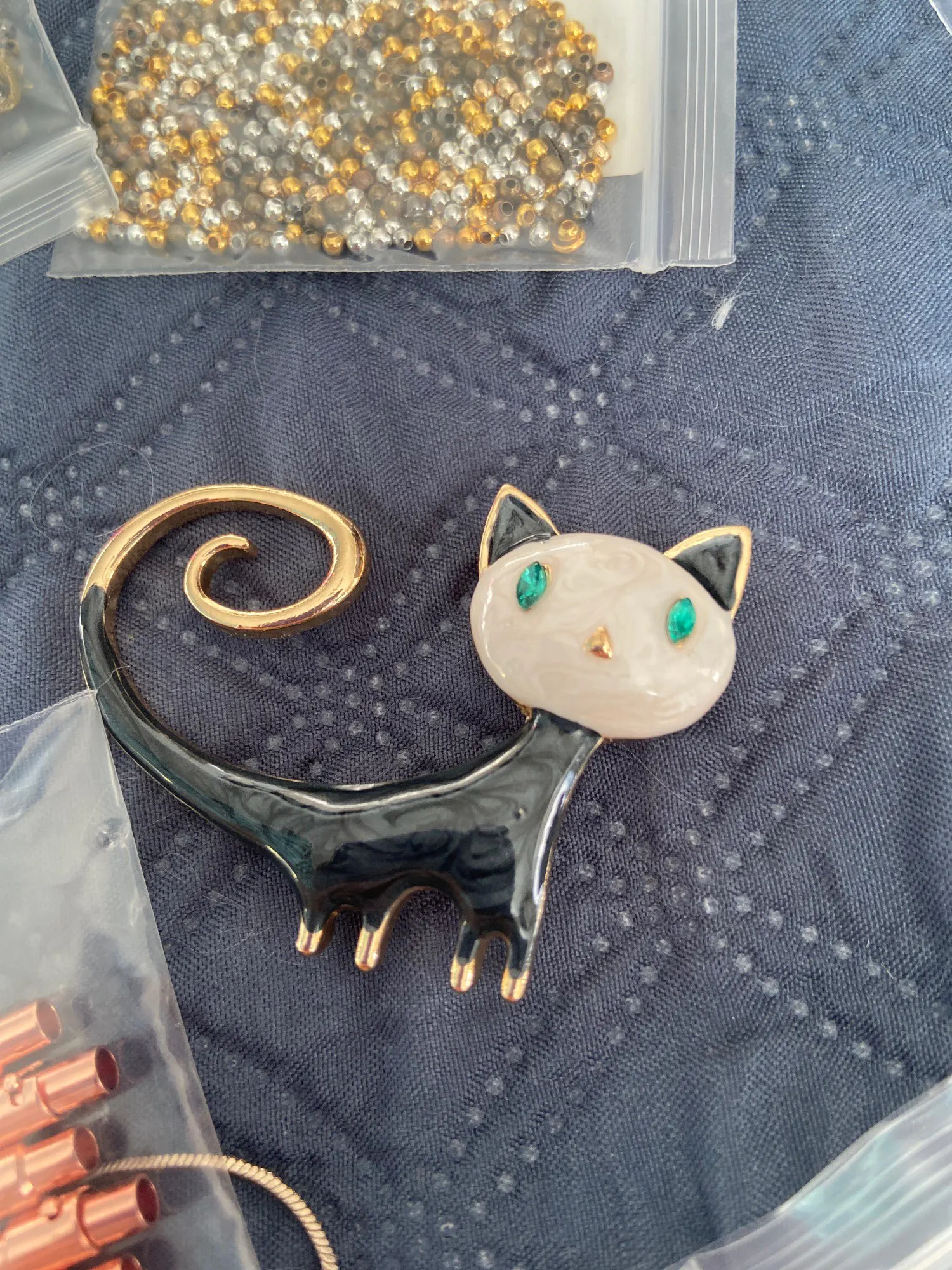 Котика прицепила к сумке , очень радует , спасибо продавцу , качественная и симпатичная брошь. Точное описание . Рекомендую к покупке .