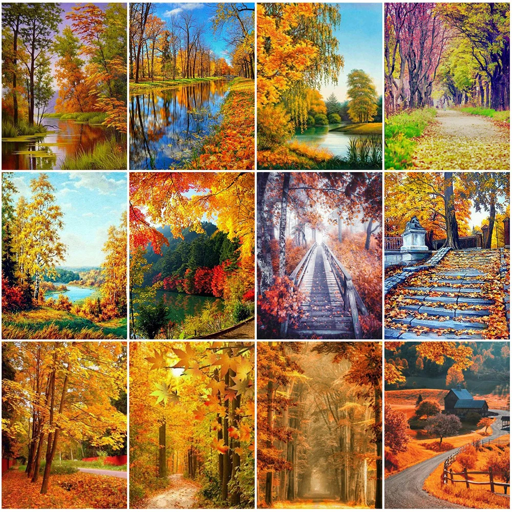 5D алмазная вышивка, Осенний пейзаж, полный квадраткруглая Алмазная картина, дерево, стразы, крест, набор мозаики для имитации вышивки, Настенный декор