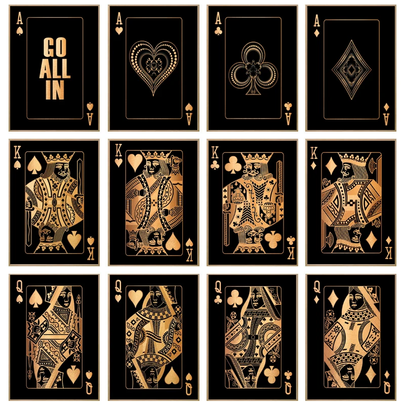 Постер золотистый в скандинавском стиле для украшения покера, настенные картины для гостиной, постеры, печать на стене, Картина на холсте без рамки